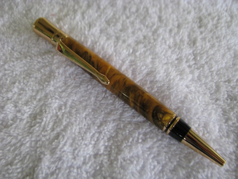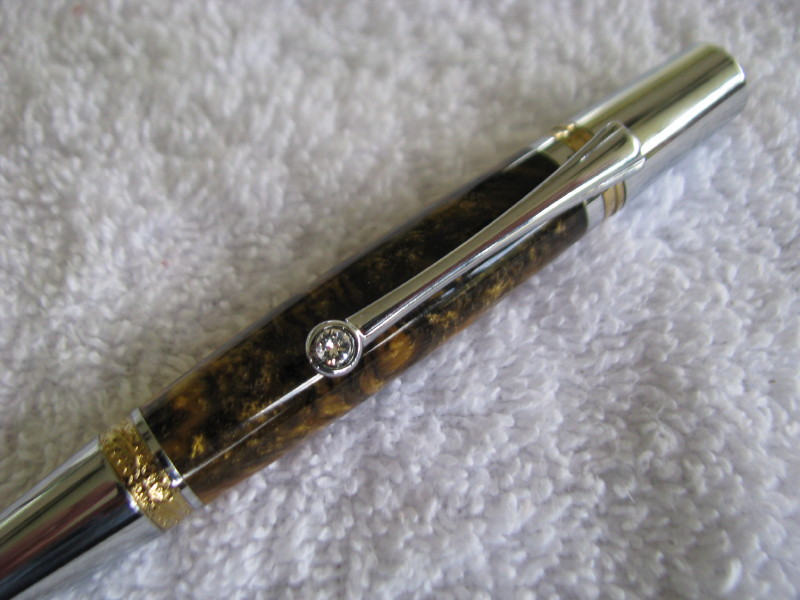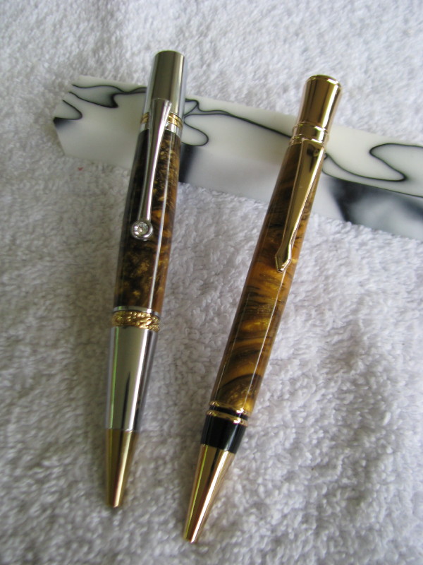 I have been turning for a couple of months and decided to try my hand at Inlace. Both pens were turned form the same blank. I had a little chip out on the Executive blank but was able to fill it with a couple drops of CA. I know where the chips were but cannot find any trace of them after polishing. Comments and suggestions are welcome.