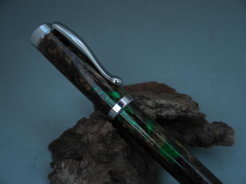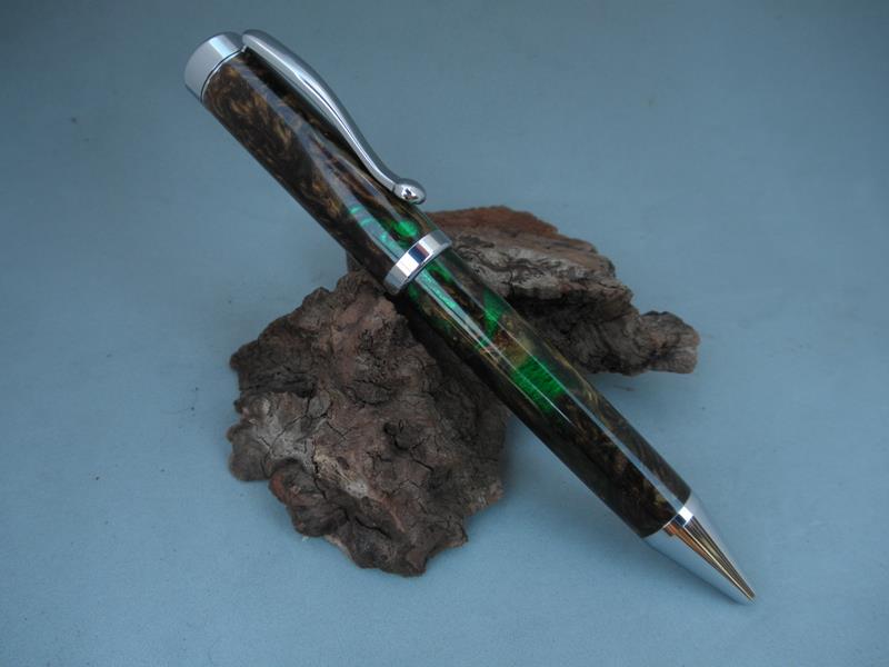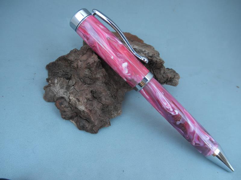 Here are a couple of Atrax ballpoints that I recently finished. The blanks came from Mr. Brooks. As I was turning the first one (brown and green) my heart sank as I got near the end as I began to see the brass tube through the green. (I know, should have painted it but thought I could get away with it.) But I went ahead and finished it since I was already committed. As I went through sanding and finishing I was pleasantly surprised (amazed was more like it). The green began to look like a 3D glass window in the middle of the brown/gold swirl. The picture does not do this blank justice. It is absolutely incredible!!! (Hats off to Jonathon once again) The second one is another beautiful blank, several shades of pink and white.