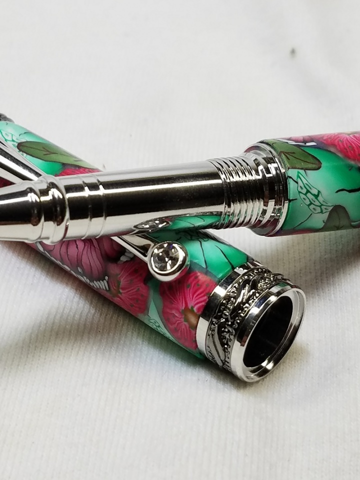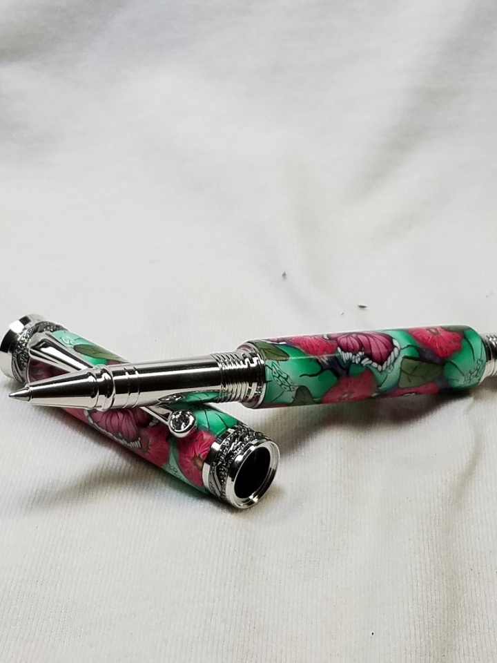 Custom order for client's wife. Found these beautiful blanks from PTownSubbie. Not much turning needed. Correction, NO turning needed. I put it on my lathe and ran it through my sanding regimen. Then I put it through my CA regimen and then my sanding regimen again. I am very happy with the results. Customer takes delivery of it this Sunday. Thanks for the beautiful blanks Fred!