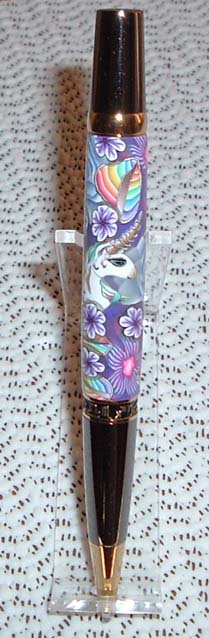 Well, this kit fit the blank perfectly. The blank has a unicorn on it and came from MrsPtownSubbie. I bought it at the MPG. I was reluctant to turn the ends down any further as it looked like it would go through the canes, so it is a little proud of the hardware.