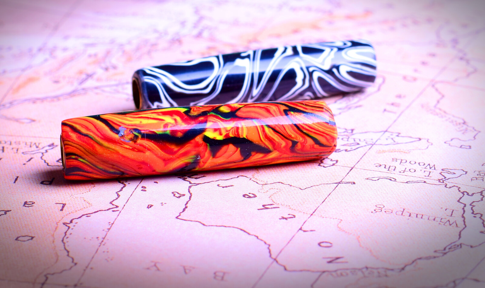 I've seen some amazing polymer clay blanks and thought I would experiment. Watched a few video tutorials and figured why not, give it a try. It's not as easy as it looks, but not bad for simple patterns. I dropped $25 bucks at the craft store for an assorted pack of Sculpey III clay and a roller. The image is my first blanks on some extra 7mm tubes. They turn well, but go lightly, sands and polishes very nice.