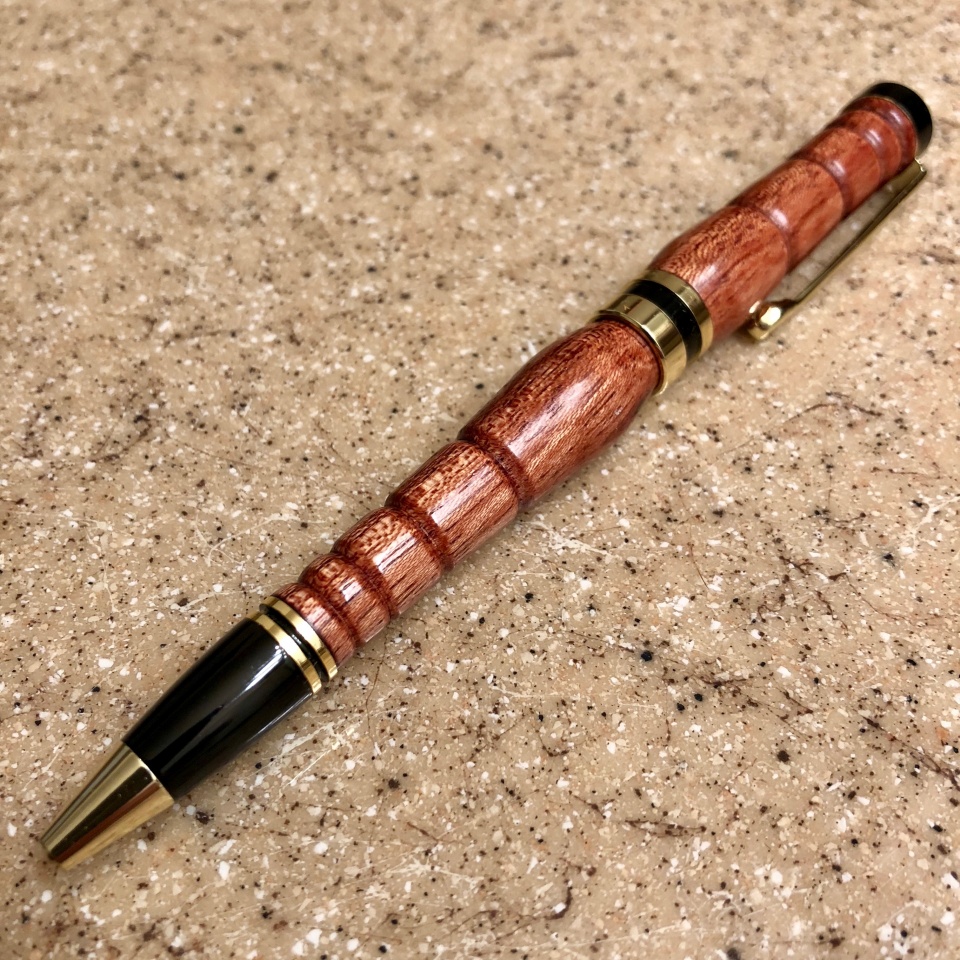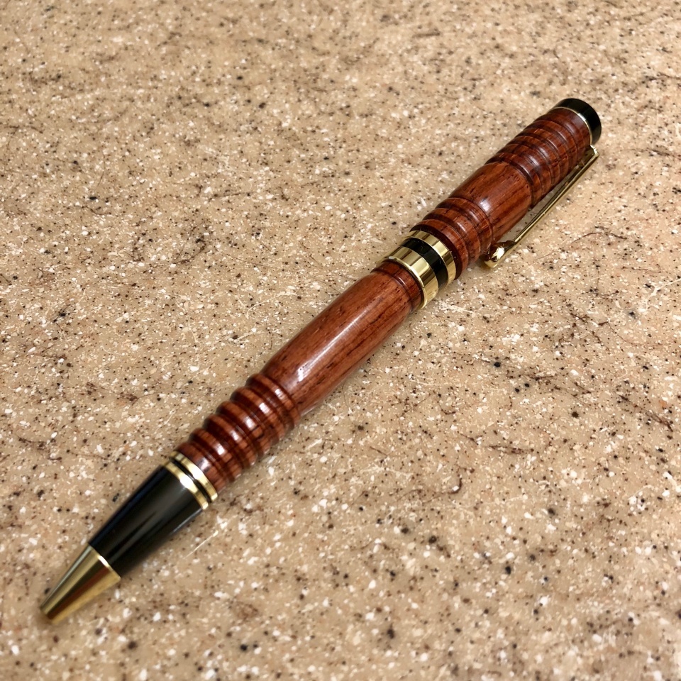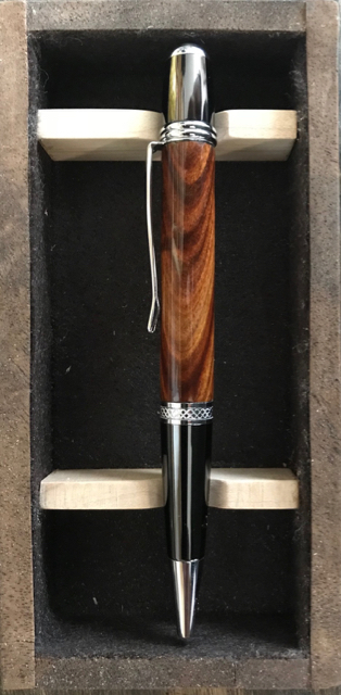 Here's mine made with Bolivian Rosewood. This pen was requested by a friend. It is on a brass Jr. George rollerball kit and has a CA finish.