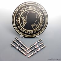 I had a customer call and ask for 6 bolt action pens with the POW/MIA blanks. Her dad was a POW for 2 1/2 years during WWII in Germany, and wanted to give the grandkids something to remember that freedom has sacrifices. The blanks are from Custom Cast Blanks, and are great to work with. The plaque I made with a pattern from D-n-J Creations on the CNC machine, as a gift to her dad. I feel privileged to have been allowed to be a part of making memories.