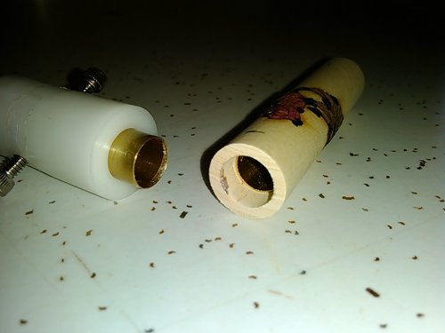 Most of the time, when inserting and gluing tubes into the blank, the exact depth isn't real critical. However, that isn't always the case with laser inlay kits. I like to be able to determine precisely how the inlay will be centered on the tube when glued and trimmed. Moreover, if I'm doing a batch of several of one type of blank, then repeatability is a must.