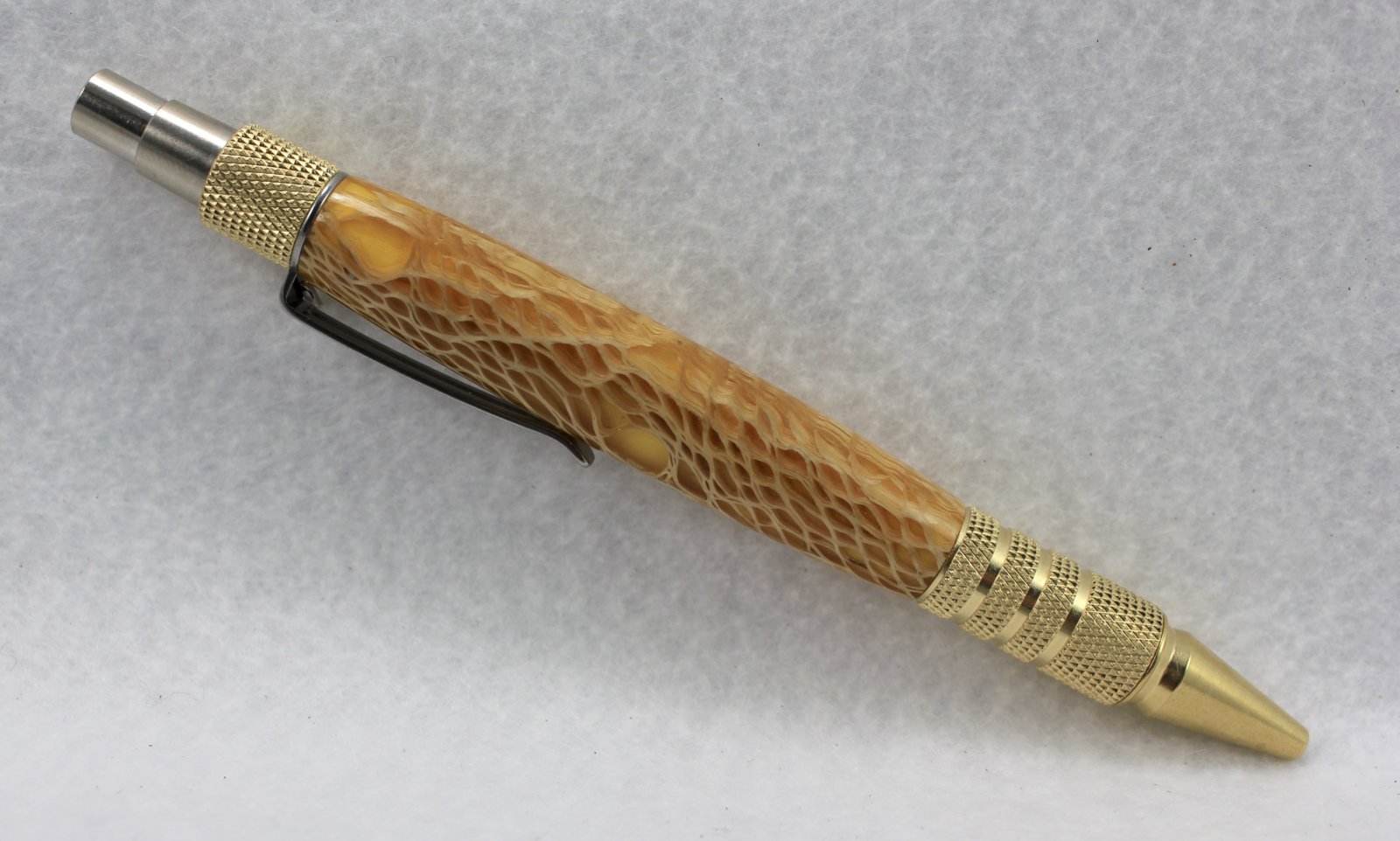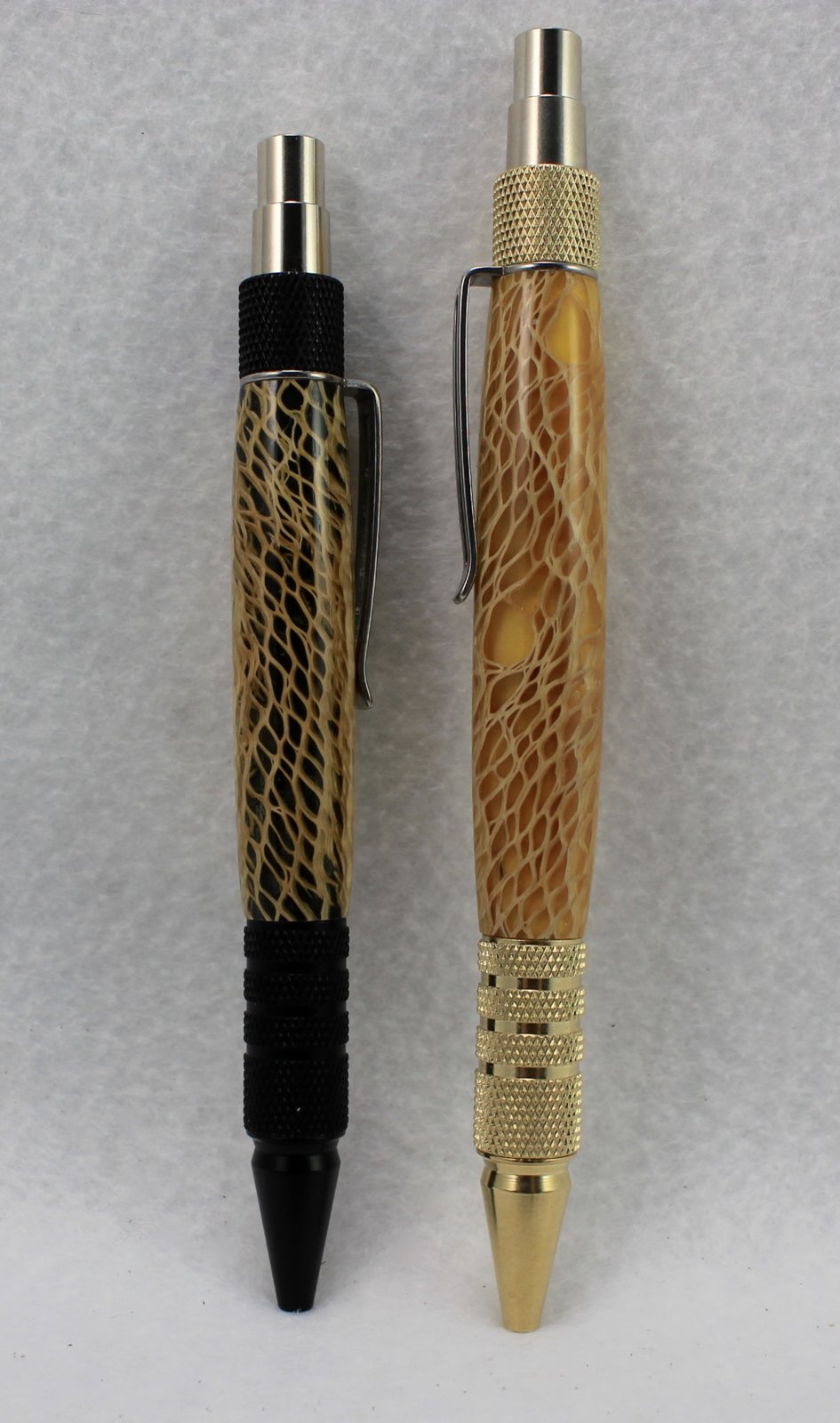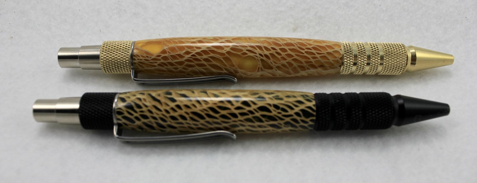 I finished these last night and just assembled a few hours ago. The yellow back-painted one I chatted about previously. I had just enough of the blank left for another EDC pen as long as I used the "modified" dimensions as others have described (discard the white extender atop the refill and shorten the tube by about 1/2").