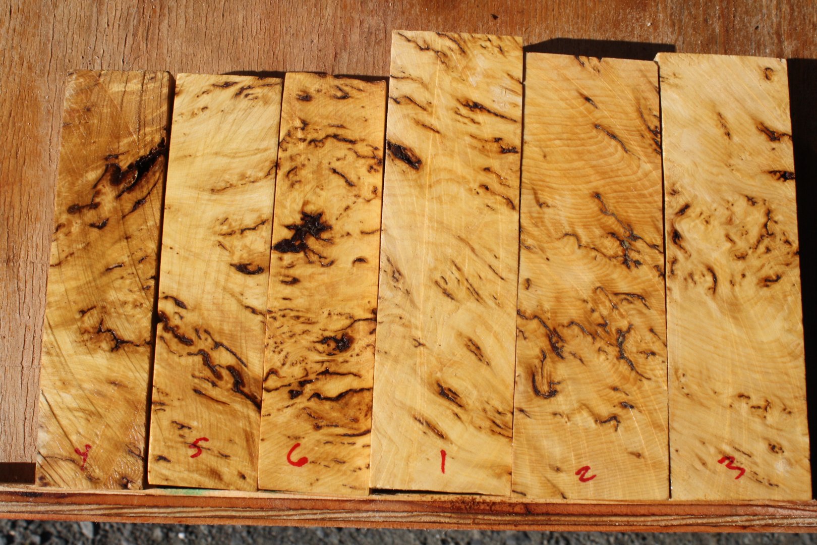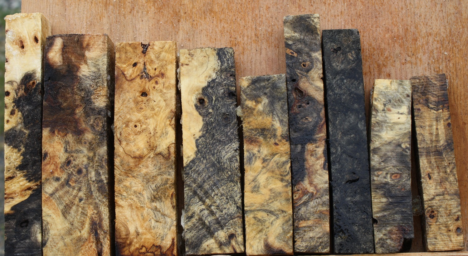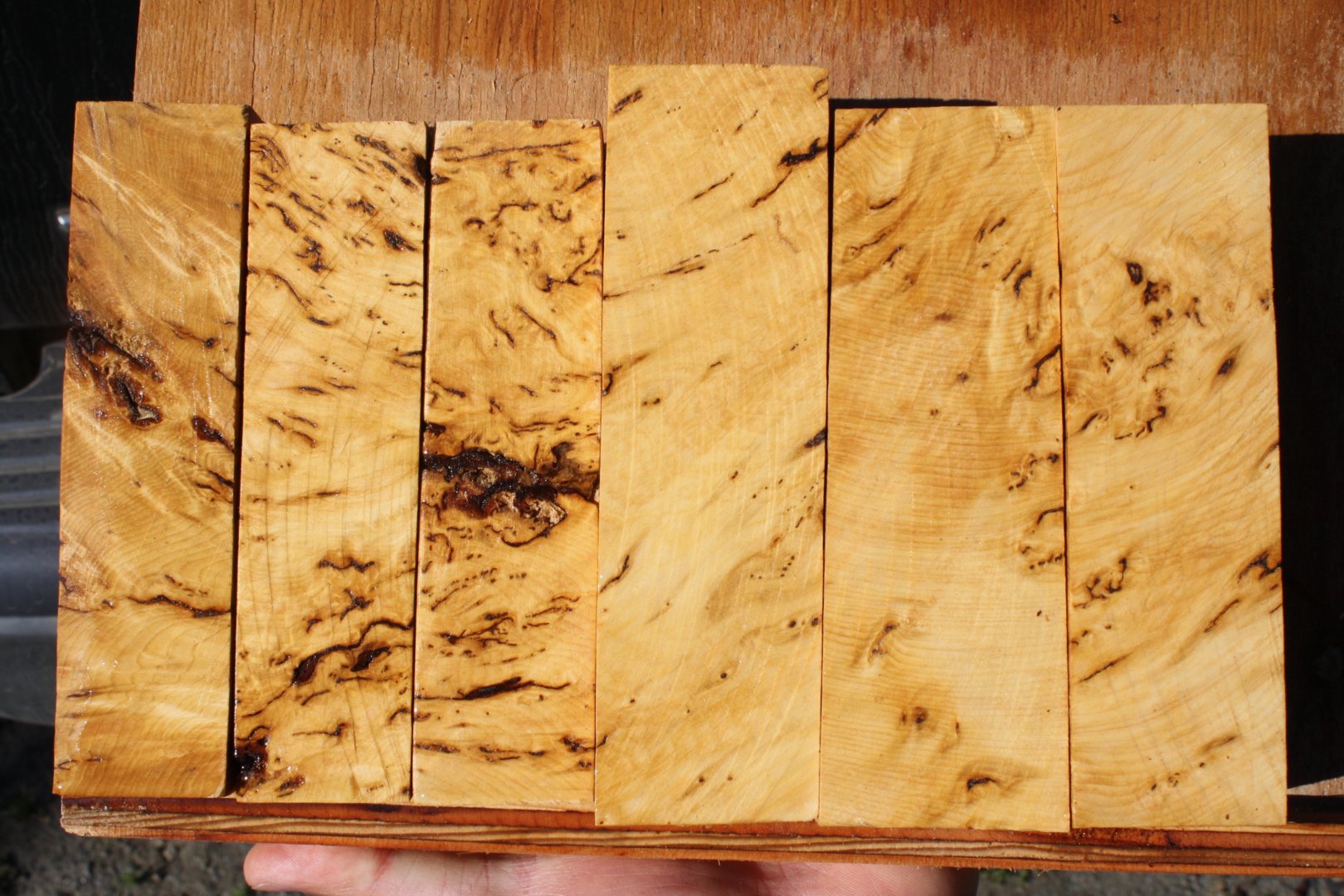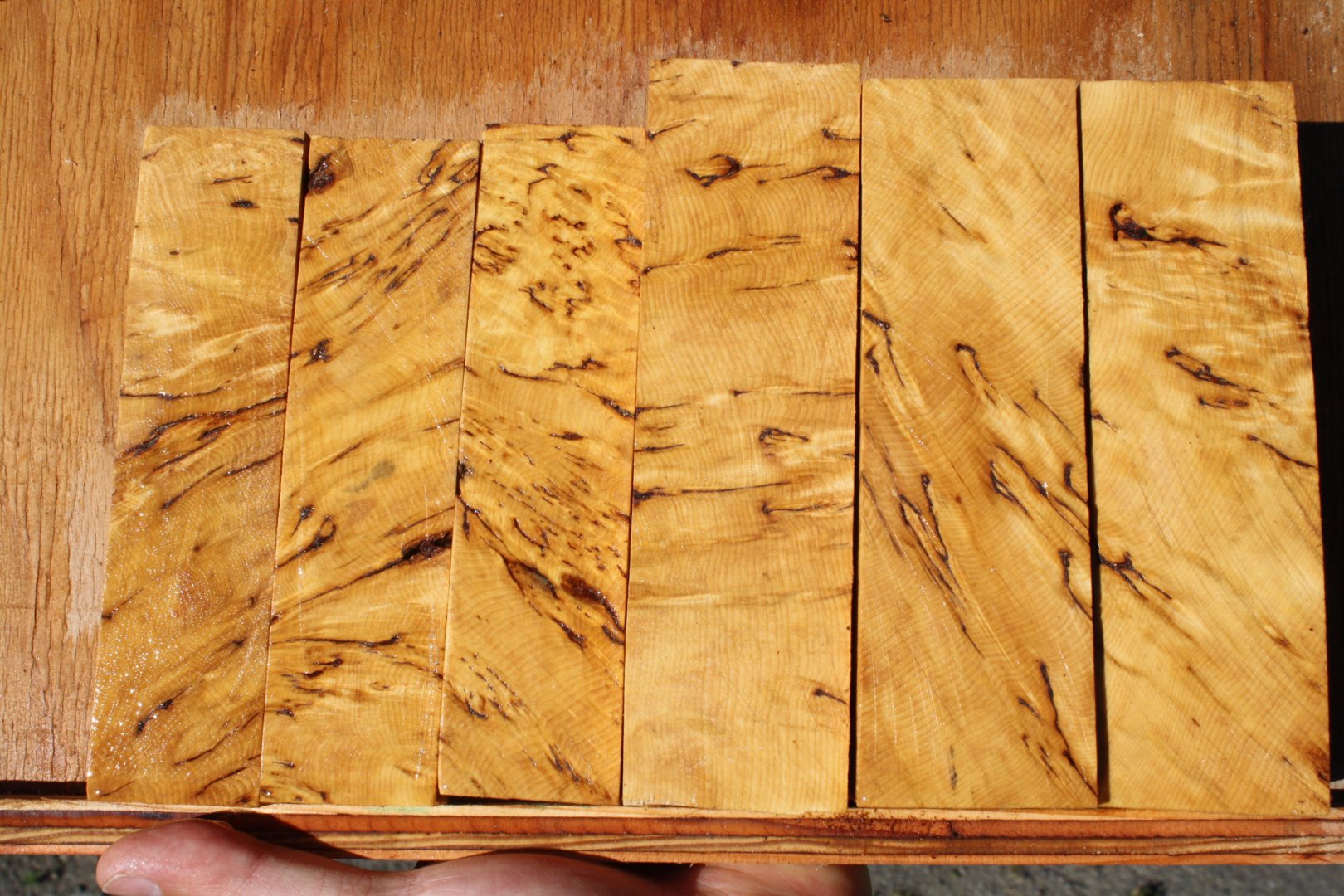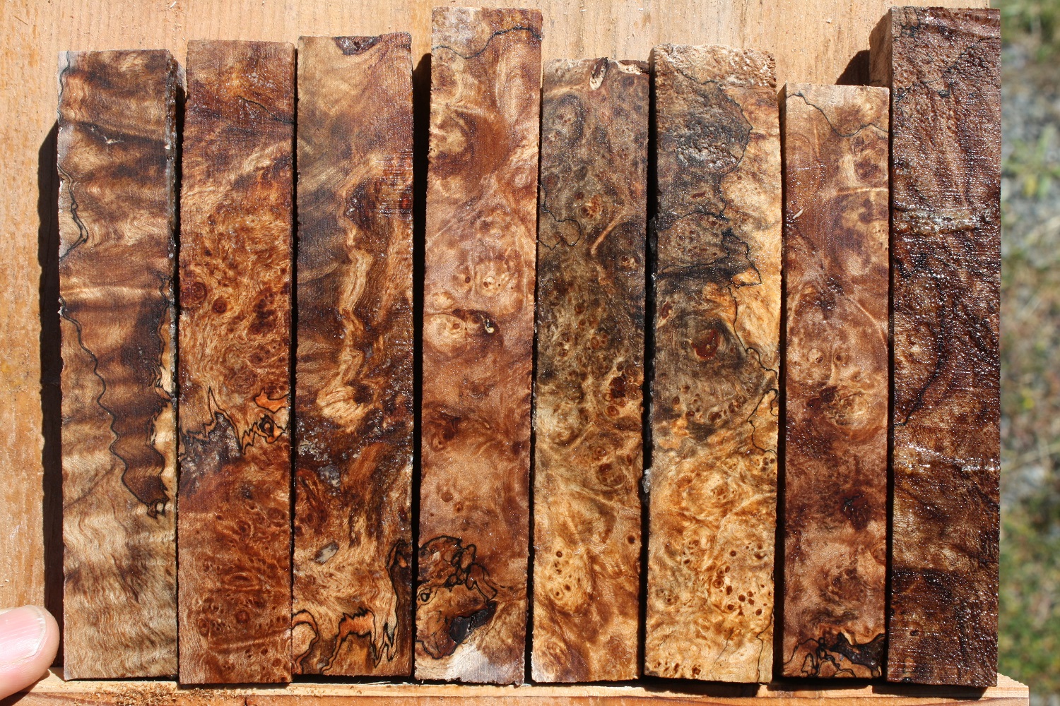 Sold. I had a huge spalted maple burl I have been cutting into blanks and stabilizing. Here is 8 great stabilized blanks, great color and figure. $50.