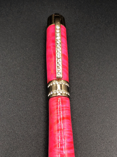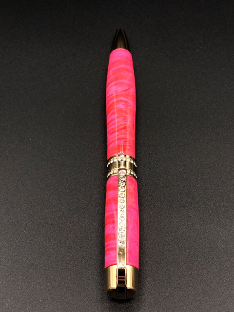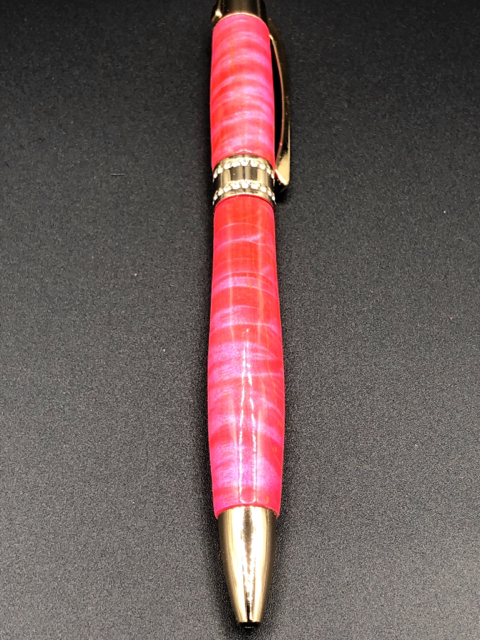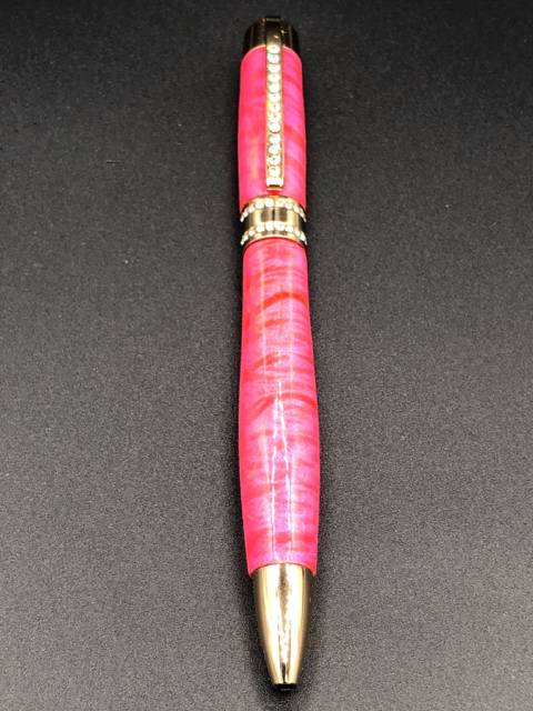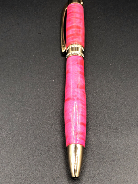 Here is tonight's creation. Pink dyed Maple paired with a Gold Princess Pen Kit with 12 coats of Cyanoacrylate.