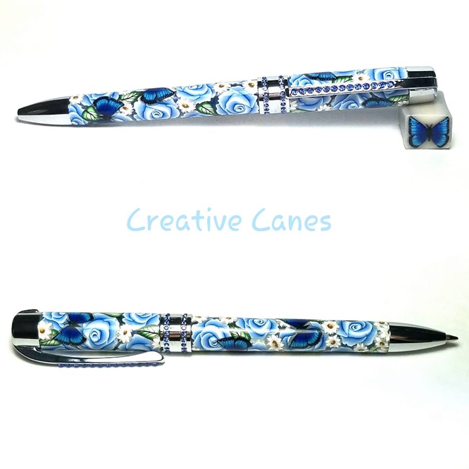 I was able to sit down and take sometime to create this beauty today. I have so many kits on hand and sometimes it's hard to choose which to make when I have a chance, but I recently made the blue morpho butterfly cane and this seemed like the perfect kit to pair it with, along with some baby blue roses.