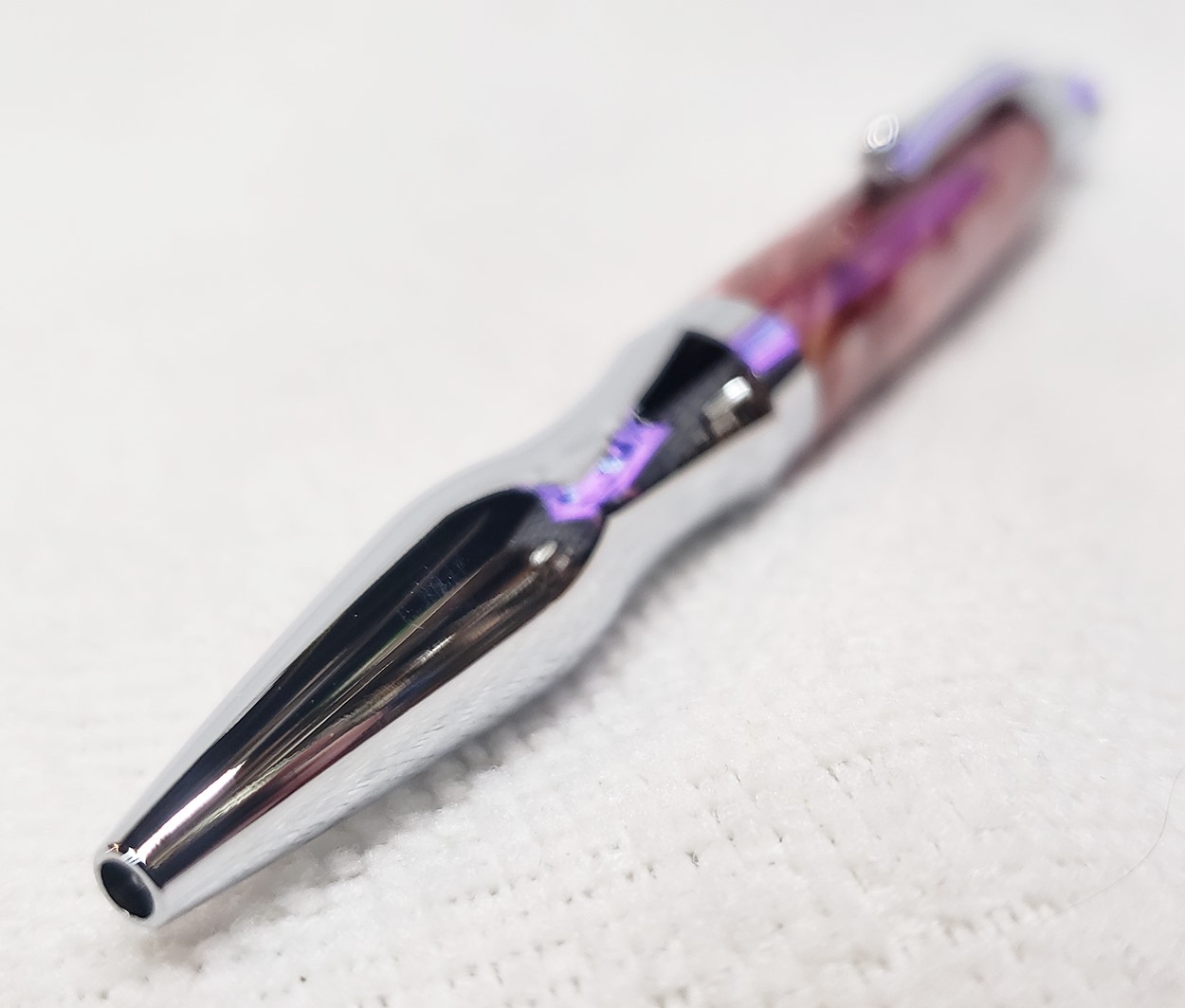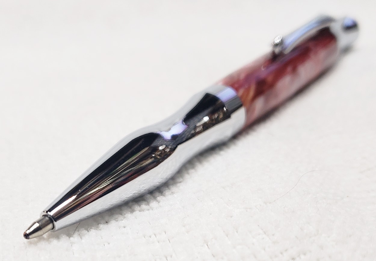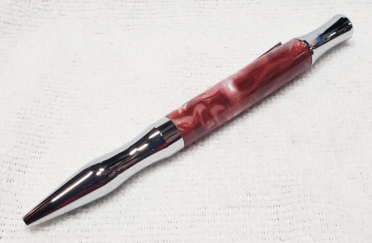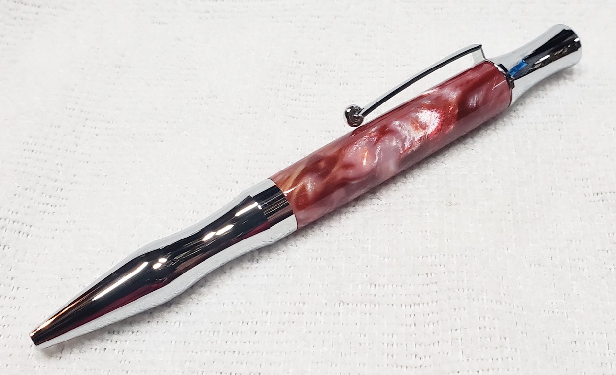 This is a Princeton pen in chrome, from Woodcraft. It's actually a Berea Virage. The blank is a Rhino called Fireball. I love Rhino blanks!
