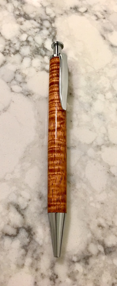 Private stash curly koa This blank was sent to me by a friend, when I made a pen for his customer, when he was unable to meet a deadline. I wanted to use as much as possible of this amazing blank and the Longclick from CSUSA is perfect.