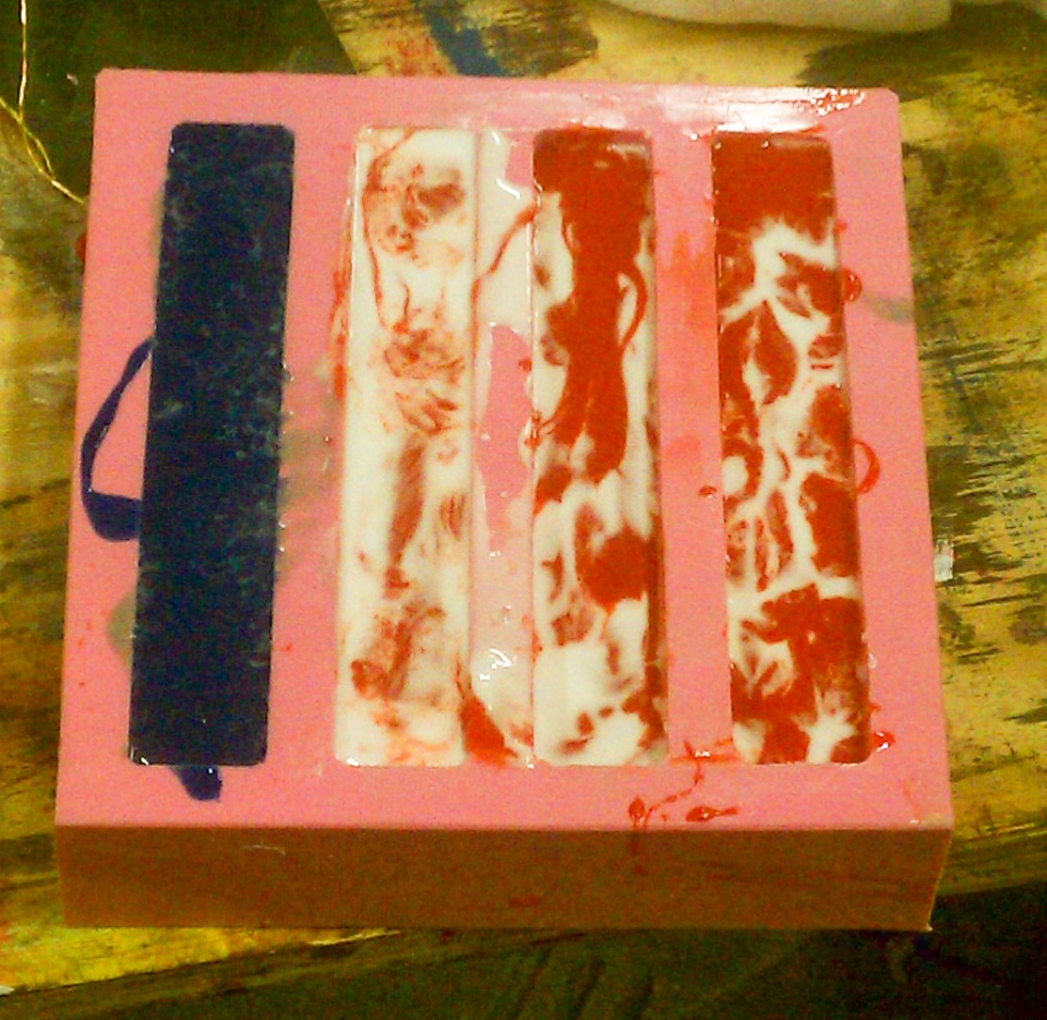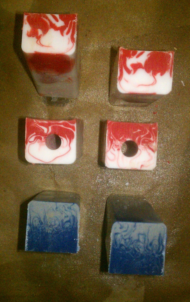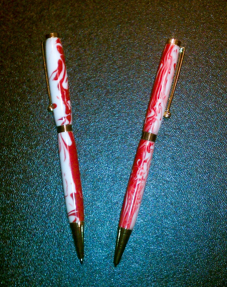 Edited - By the way, the finished pen on the right I took a piece of wire and mixed it a little in the mold to see if I could stop it from separating... Still separated, but not to happy with the tighter colors. I want big color mix like on the left.