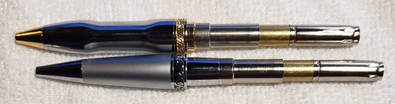 I just completed a Woodcraft Wall Street II Grip pen. The problem is the cap/clip assembly doesn't "grab" the top of the twist mechanism. In the first photo, it has just barely started grabbing. If I push it all the way in, it will work, but it pulls apart way too easily. Has anybody run into this before? Is there a fix? I know it's not the twist mechanism, because I just completed a Wall Street II (not grip version), and both mechanisms work in it just fine. I believe these are Berea kits.