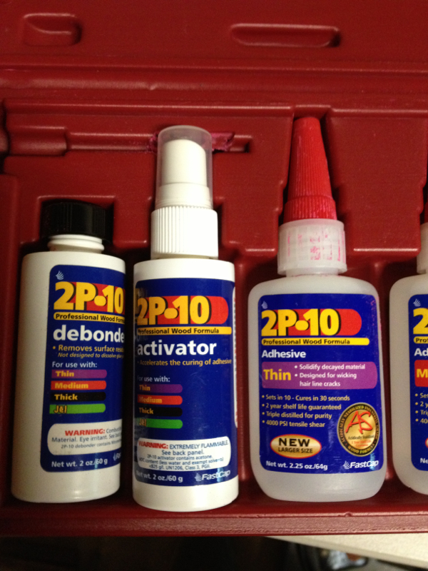 I was doing a circurt board blank and i chip it out, so i used the gel to fill the void and used the accelarator. Worked like a charm! When I went to assemble the cap onto the wall street 3 and notice it fit sloppy so i used the thick ca to glue the cap but i was a little heavy handed and it was real tight when i put them together. I took the debonder and poured some into the the blank with the cap and let it sit a few minutes. Got my pick out and pulled some of that glue out. The debonder works fantactic! Better than the other brands! This is a great kit I love the box it came it, keeps everything organized (as long as I put it back).