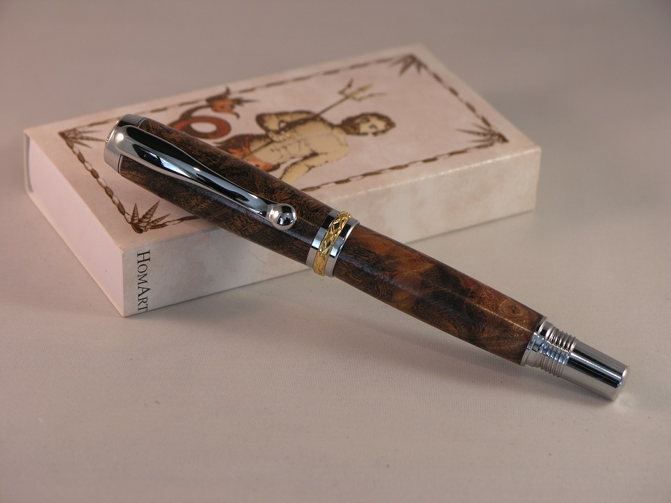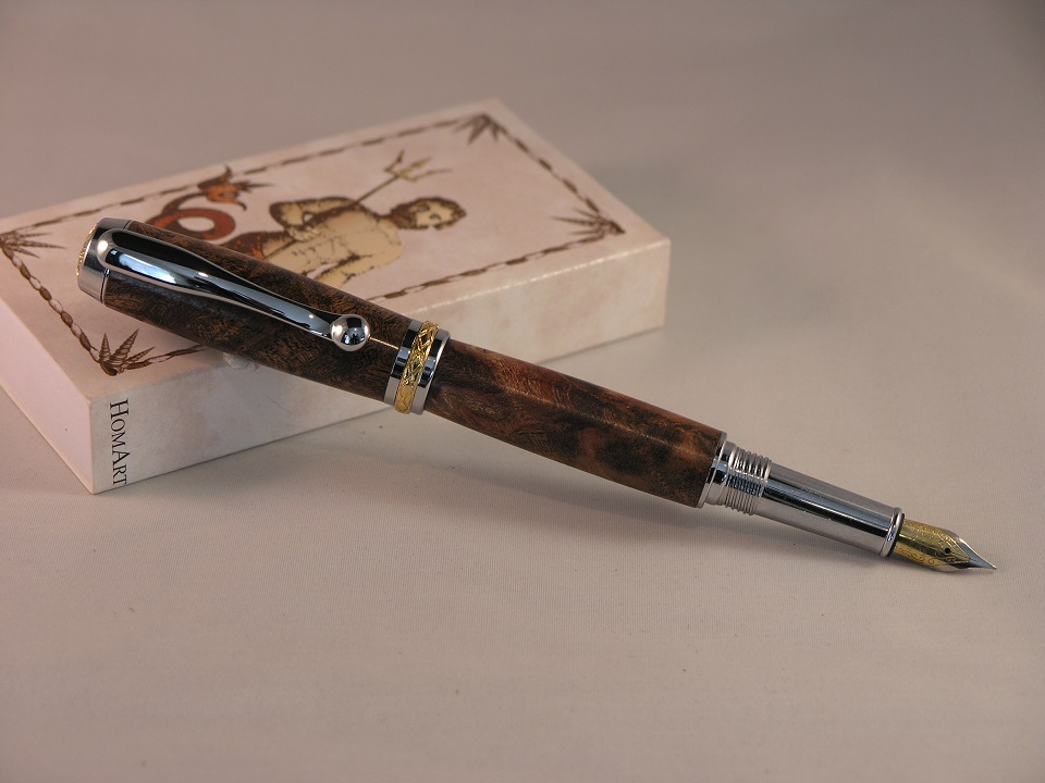 The second pen is a Triton FP in chrome and Ti gold with a double dyed (black and red) maple burl blank.