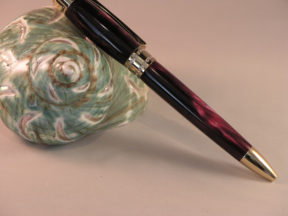Next, an Ultra cigar in Spalted Tamarind and, finally, a gold Princess in burgandy Madreperlato acrylic.