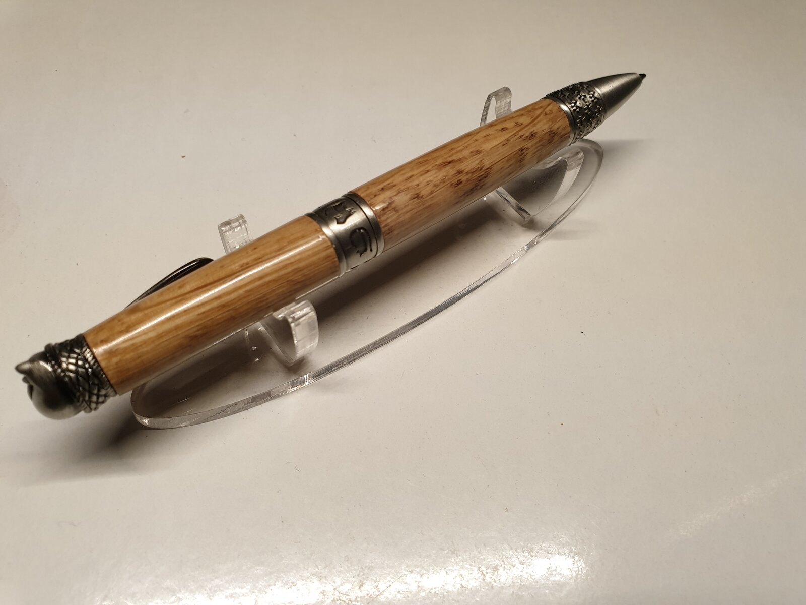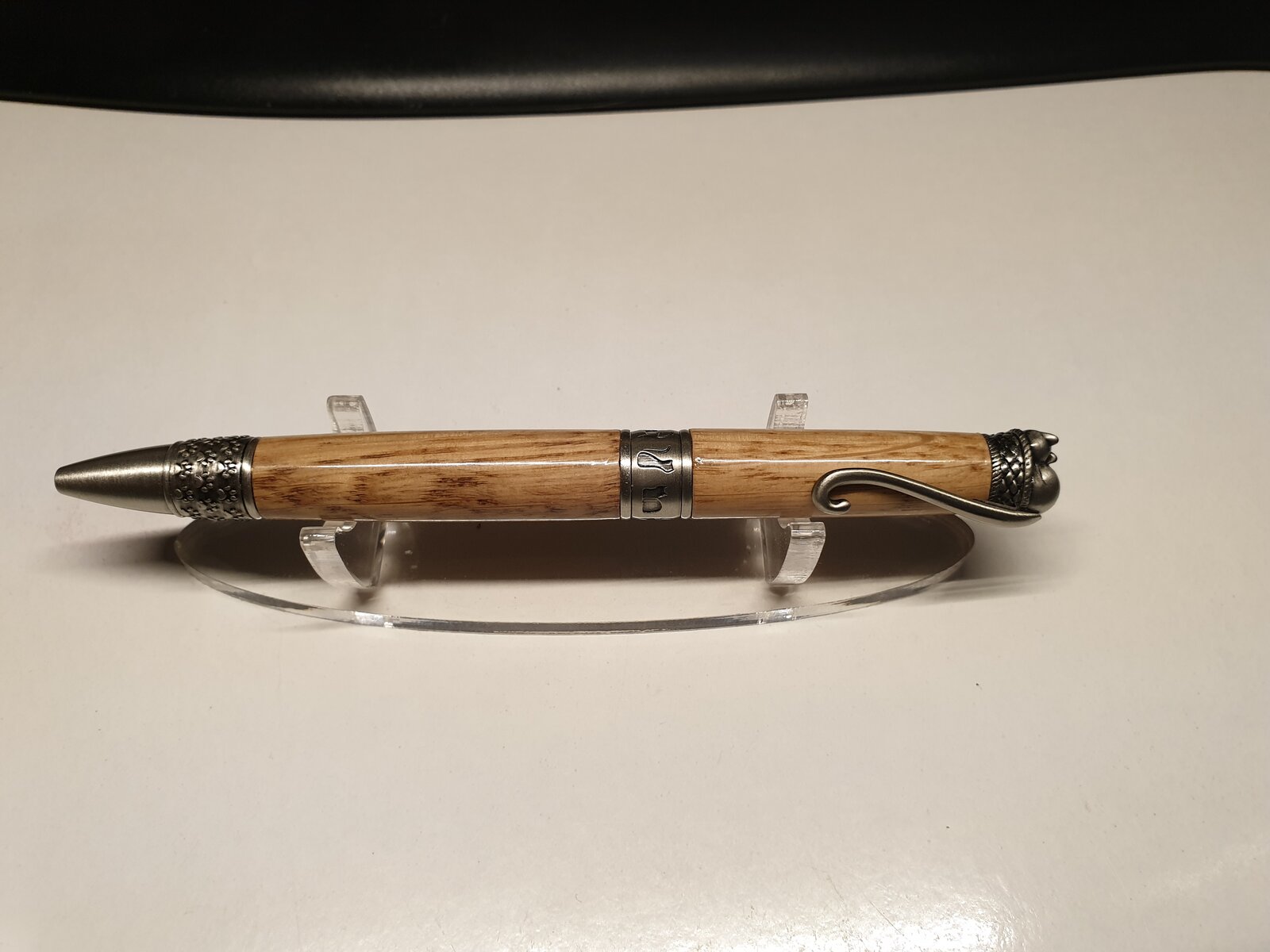 My wife and i love cats, we have 3 of them. So i had to get me some cat pen kits. This one is antique pewter kit with a nice grained oak. CA finish, nice kitty