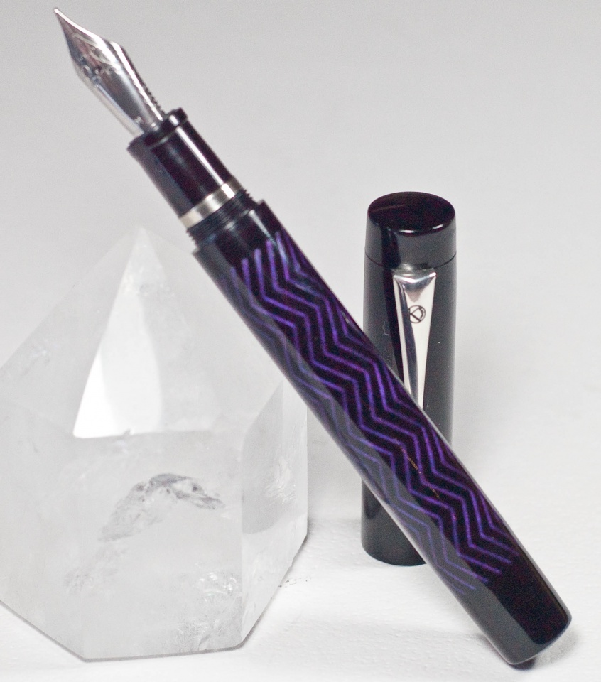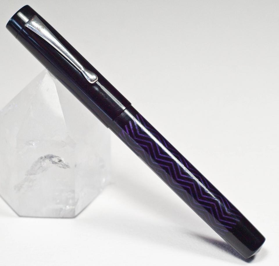 I like this chevron pattern, and the inlays, cast in opalescent purple PR set the piece of black acrylic off nicely, I think.