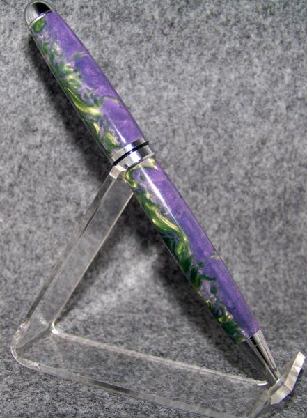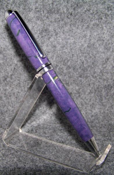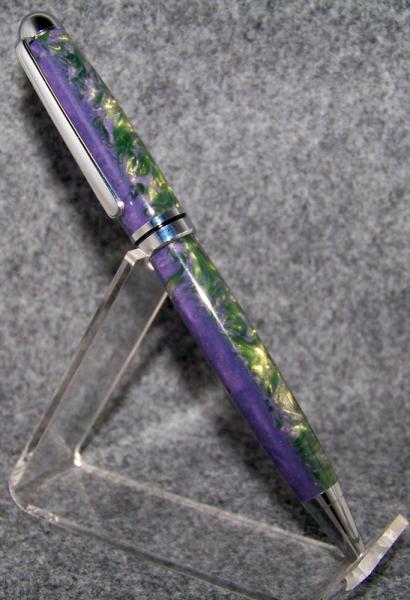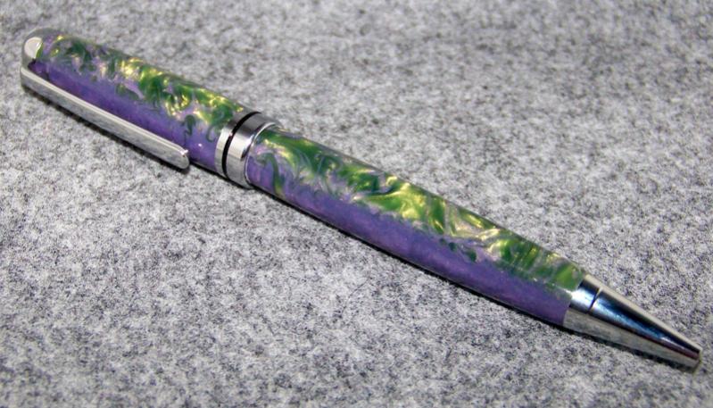 Here is a chrome designer i've made for a customer. They asked for a purple/green pen for their mother. This is a blank I made myself. I didn't exactly try to make this swirl effect, but I like it and I think they will too. MM to 12000, Buffed with tripoli and white diamond, and polished with PlastX. Any comments welcomed! Thanks for looking.