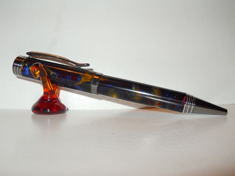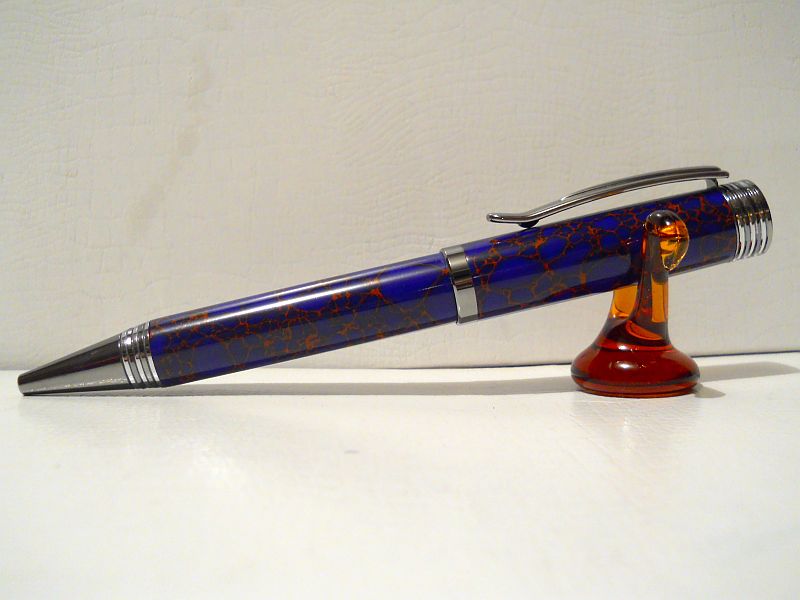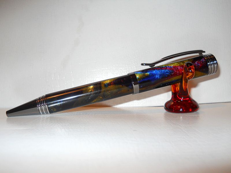 Here a 3 Dukes I made for the contest.All metal parts are blk ti, and chrome.The first one was dressed in Azurite web,the 2nd was my contest entry and it is done in banded blk/white.The 3rd is done with a cosmic pattern alumilite.
