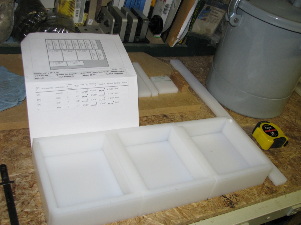 I used the cut sheet Curtis put up and I think my table saw was off a smidge as I had to re-cut the bottoms to fit with the side pieces. One of them I will probably dis-assemble and remake into smaller molds for other single cast blanks.