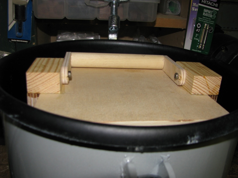 Rounding the corners was needed as the photo shows my first attempt to drop it into the pressure pot which has a rounded bottom preventing the carrier to lower enough to get the lid of the pot back on.