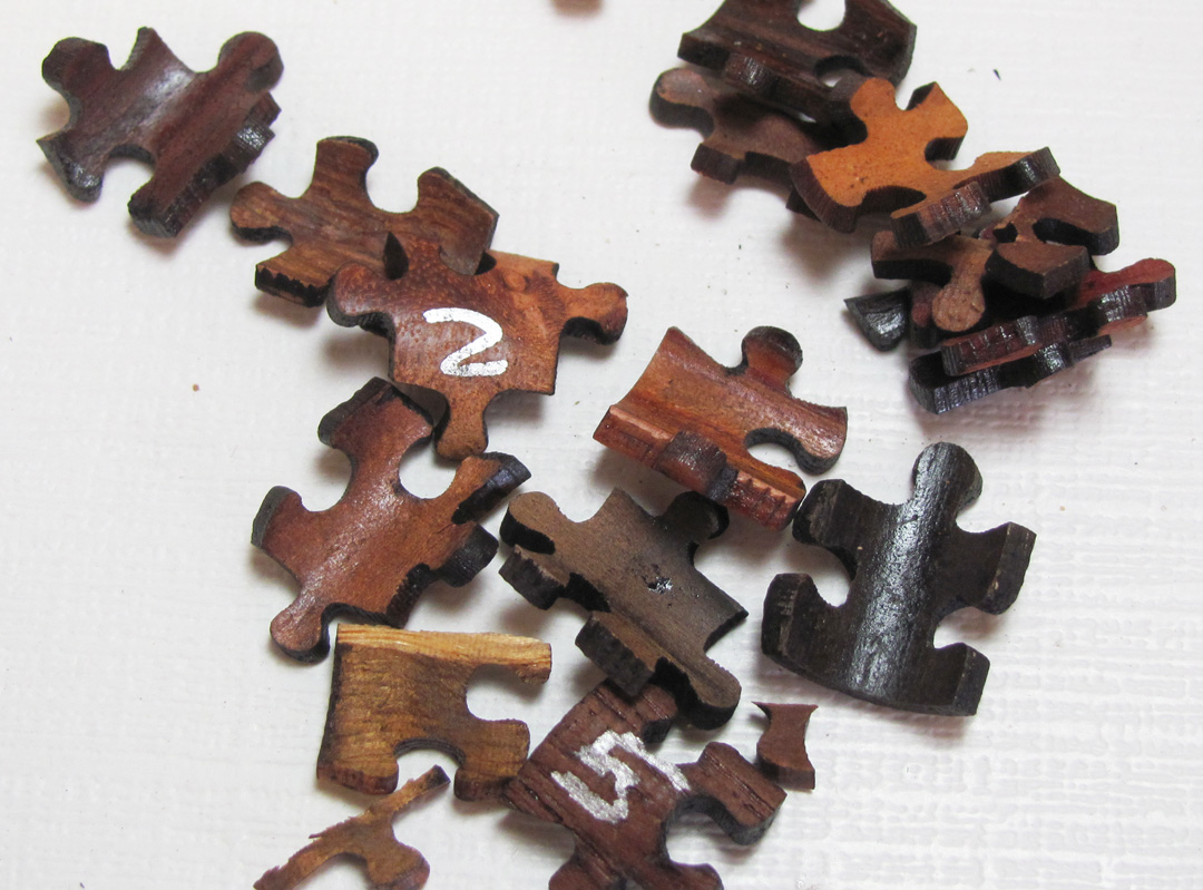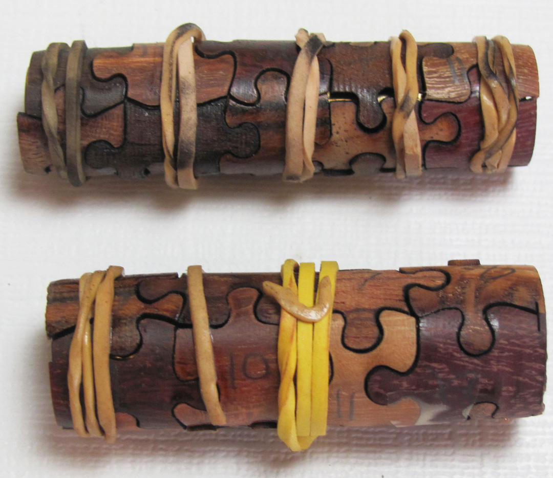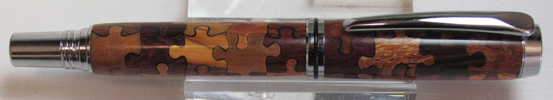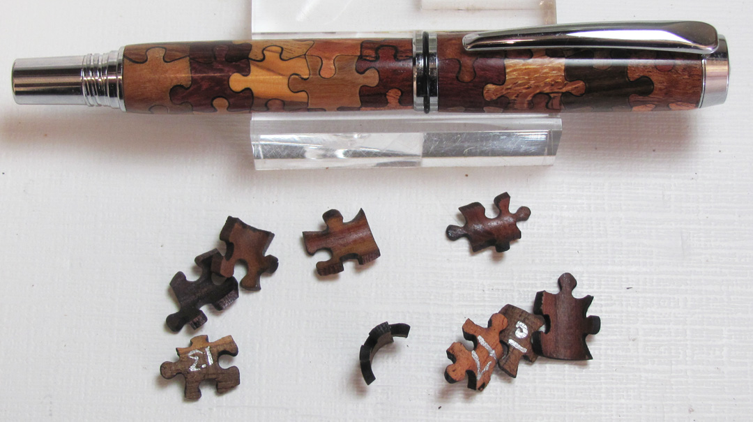 I did not cut the pieces. But, several species of wood are cut into blanks. Then drilled for the appropriate kit tubes. They are turned close to final diameter and the pieces are cut with a laser. The laser kits are available from Ken Nelsen at Kallenshaanwoods.com