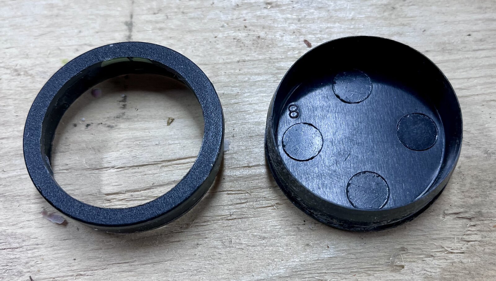 That's definitely a problem. I haven't experienced that with the caps but have an idea what the problem might be. I use Alumilite Clear and always warm Side B to around 90°-100° before mixing by using a light bulb and shop clamp light. If you can't find incadescent light bulbs, look for heating lamps for pets. Some use hot water to warm the resin container. Side A is naturally thinner so it stays room temp (in the 70°) Thinning side B will allow your resin to mix easier and faster, and be thin enough mixed to get in that inner seam and allows air to float up easier. Im guessing those air bubbles are from the air trapped between the clear tube and the black caps. When the resin is thinner, it fills that area easier removing trapped air. I'm not sure why the pressure doesn't compress them smaller than that but I think the resin thickness might be slowing down the time it takes for the air to be replaced by resin around the inner seal and by then it's too thick in it's curing stage to float all the way up.