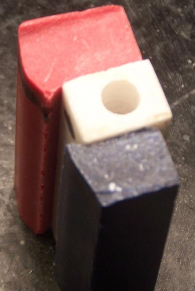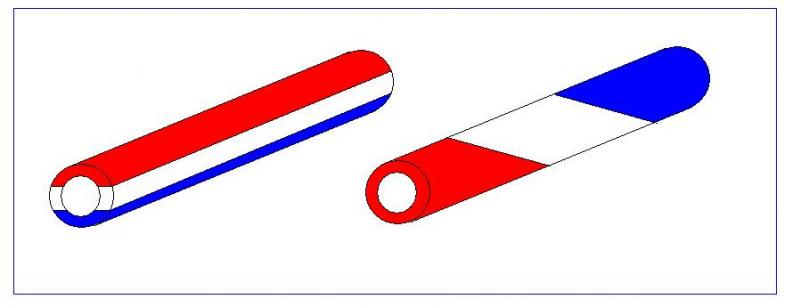 Or you could cut each of the corian pieces as shown buy the blue lines and glue the narrower pieces bake to back on the long edge (see next graphic). Then cut them in half again as shown in the next graphic. Then flip one of each and glue it together as shown in the next graphic. That will give you a blank made up of four long thin segments. You can turn it like that, or do something different. Like cut it into smaller pieces and stagger the layout as you glue them back together. That would give you make something like the Sierra shown last.