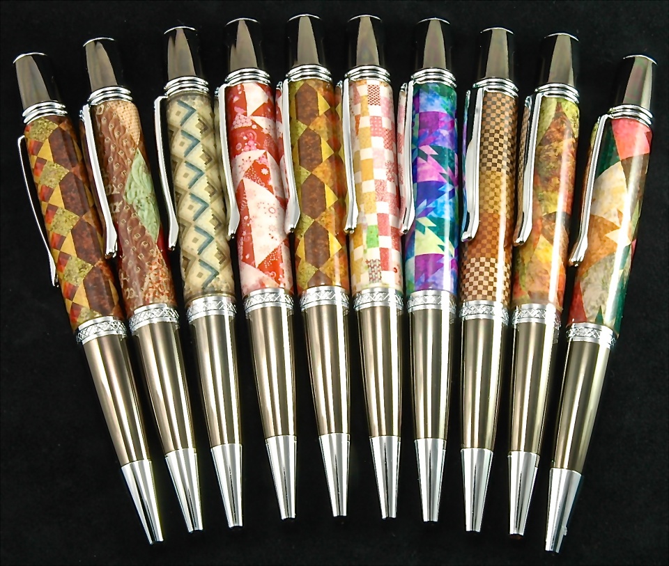 To answer your question, it's just paper! The customer wanted pens that had the look of quilted fabric, so I just cut out some pics from a fabric magazine and used "tube-in" techniques to apply them to the brass tubes. Pretty simple and straight forward, and they were fun to make. The customer was very happy with them!
