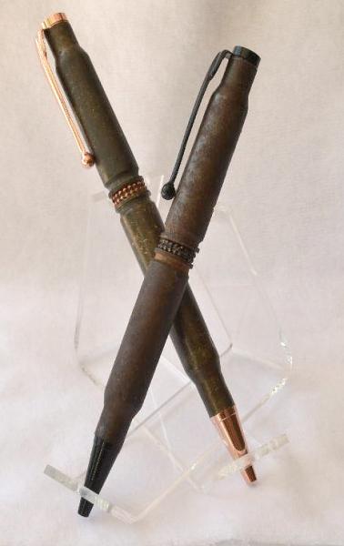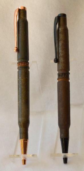 I was at a BR Shoot last week end and picked up some old dirty rusty ,crusty,and nasty spent shells. I like the old "well used" look of these two pens. C~N~C's are AOK with me. Be well..............Jan
