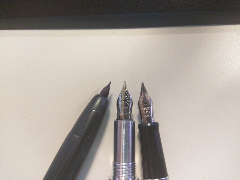 Here is a pic with my Pilot Metropolitan on the right with the (M) nib. Assuming it stands for medium. The Raw Aluminum is in the center, and the left is my Pilot Vanishing Point which was purchased and labeled as fine.