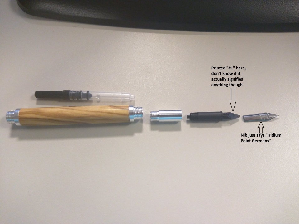 Here is a pic of everything disassembled. You can replace the Nib. There isn't a lot of information printed on it though. There is a "1" printed on the plastic part but I don't know if it actually means anything or not.