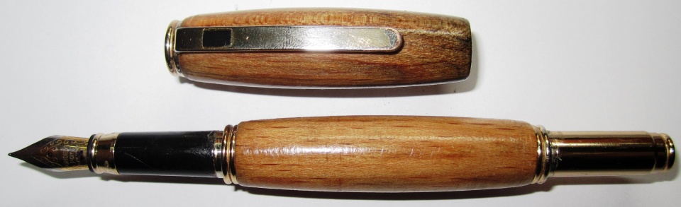 Re-made this pen in lathe, retained the old wood. Also serviced and tested the pen for writing.