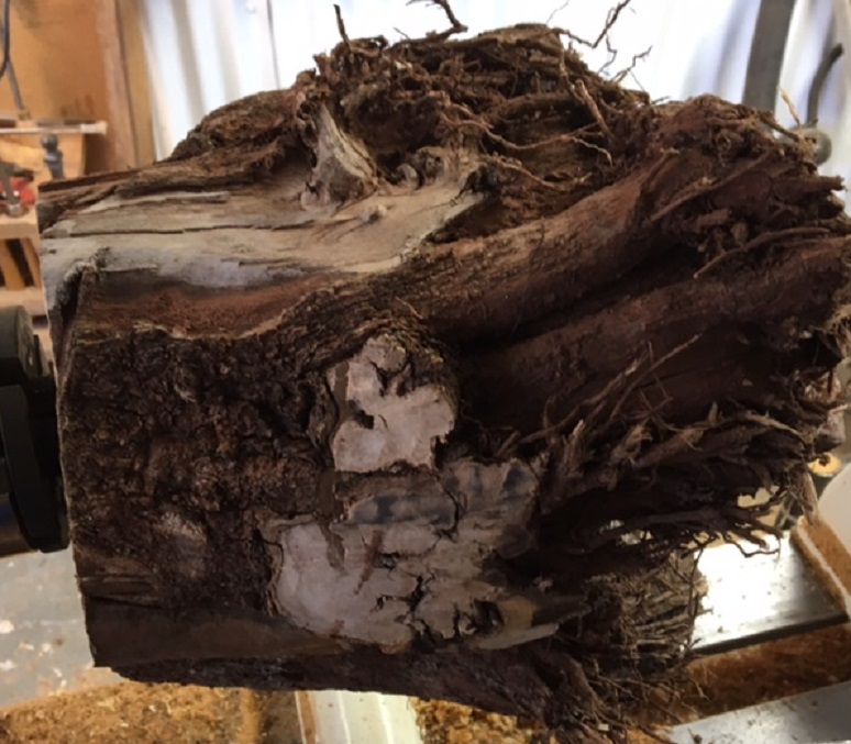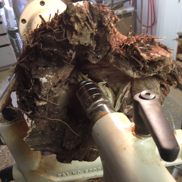 I was driving home from Sedona the other day when I got a urgent call of nature. I pull off on a dirt road and found a root burl, though it was mesquite but the wood is to white and soft. Not sure what the wood is so if you have any ideas let me know. The pictures show the progress as I worked on the vase.