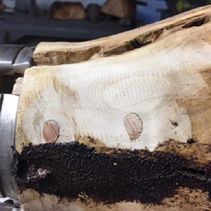 Where there is a large crack I put some dowels with glue to keep it from cracking worse. The finish is orange oil and bees wax and yes I do have a bloody sore knuckle. That hurts!!!!
