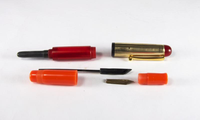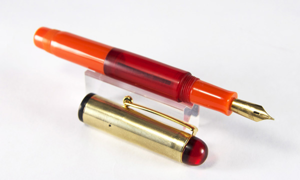 Hi all, I bought vintage Eversharp Skyline at flea market few weeks ago, but It broke off at the section and barrel while I was using. It has a 14k gold nib, gold filled cap and lever filler. I am environment friendly guy so I recycled some of it's parts and made a completely new pen. Lever filler is too much for me so I changed it to bulb filler. It is my first bulb filler and works very well. The Clip was already missing when I bought it so put new clip. Home cast Alumilite for the see-though barrel, finial and inside the cap. free goodie orange Acrylester from woodturningz for the section and bulb cap. I reversed the cap orientation so the 12mm threads can be used. Thank you for looking and as always c&c welcome.