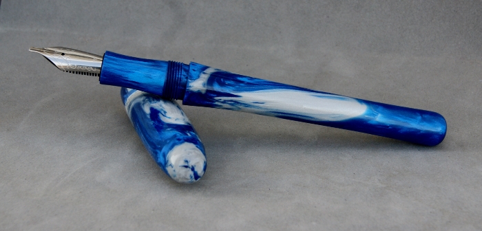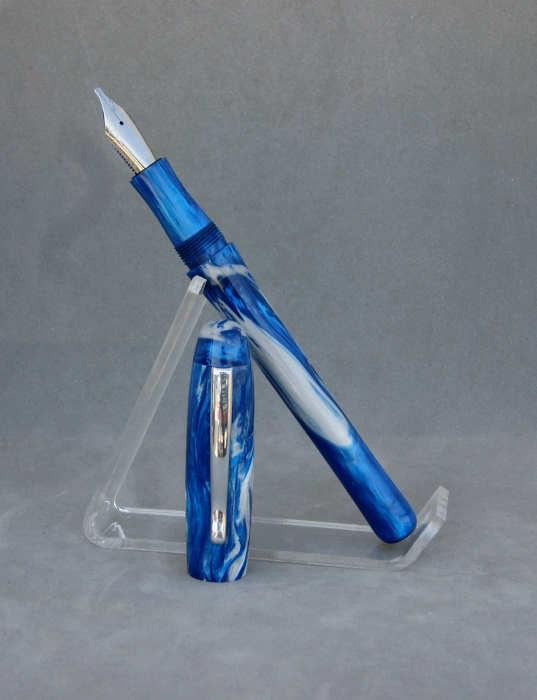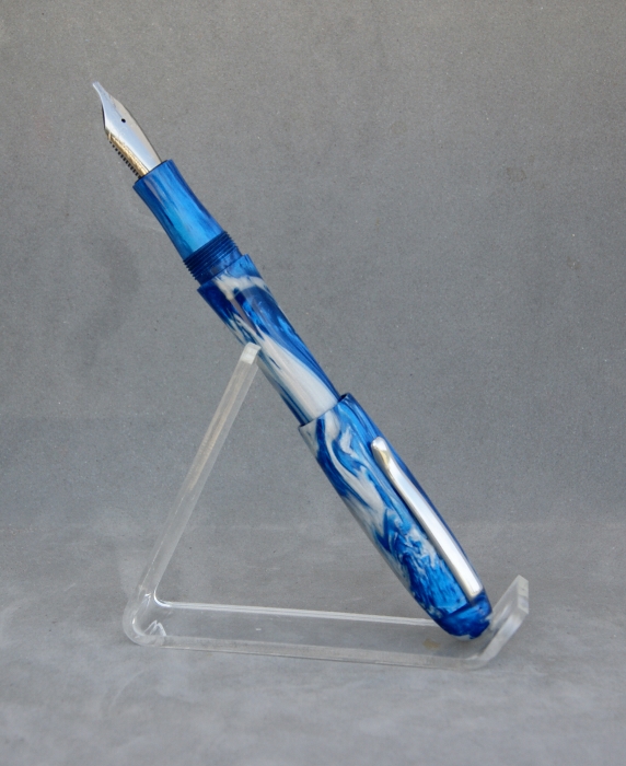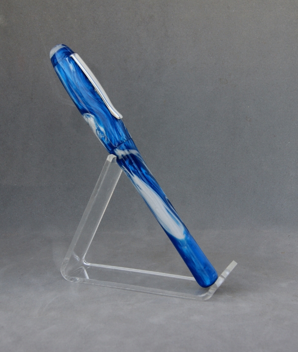 Here's the latest from the lathe. It's a commissioned pen in the style & design of my client. He wanted something similar to the Parker Urban but in a royal blue and silver swirl. This is what I came up with.