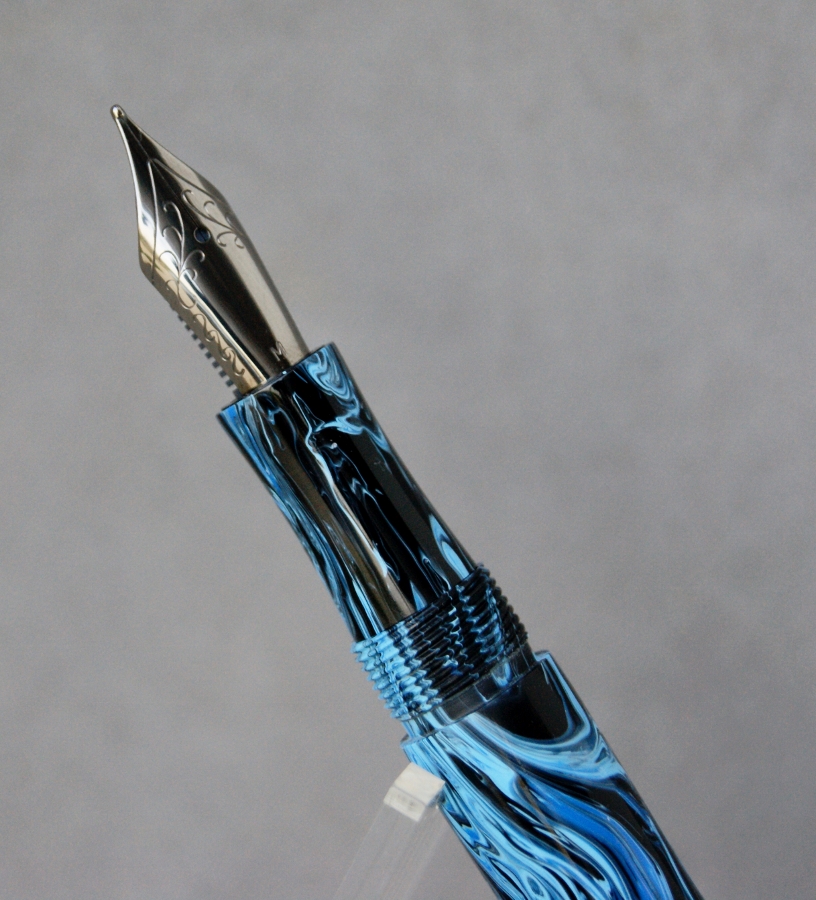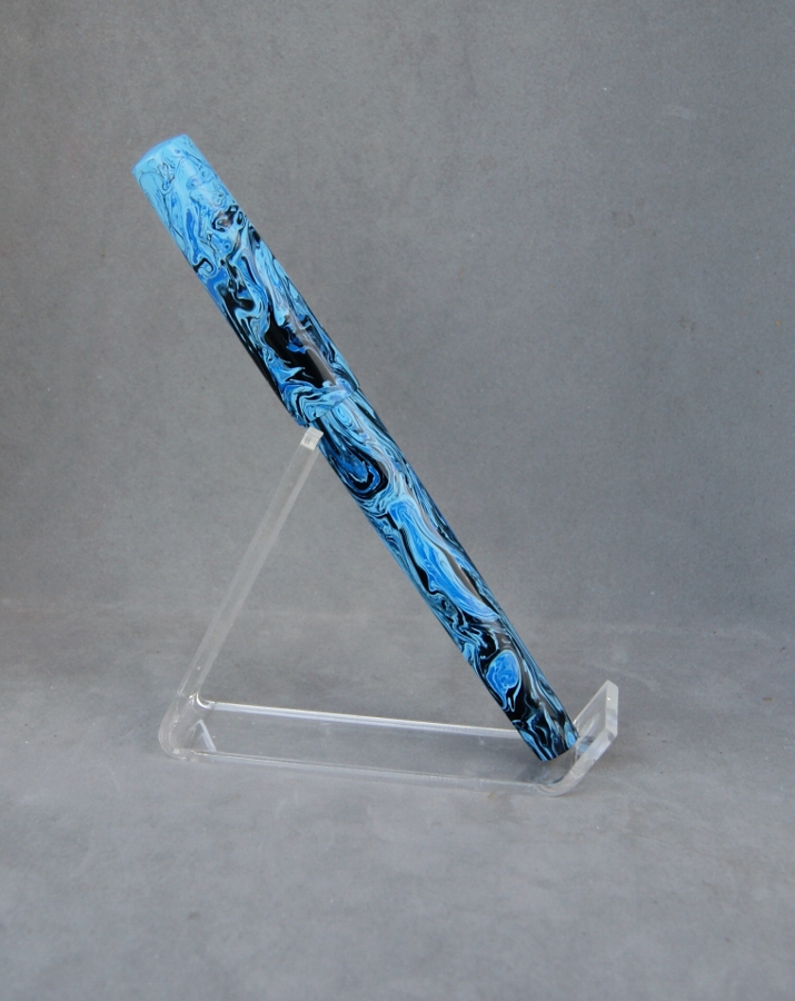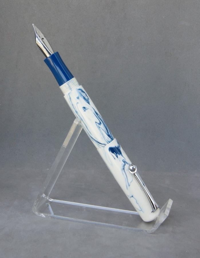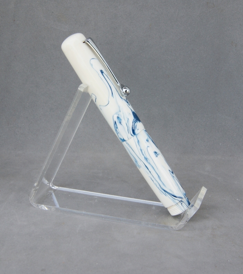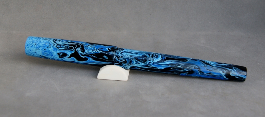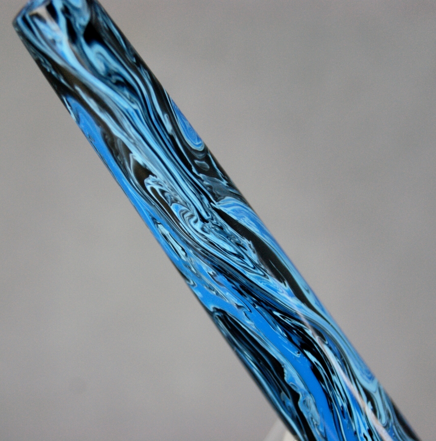 Last is my most recent completion. It's a fun little pocket pen done in a blank she helped come up with. I decided to call it "Blueberries & Cream". It's hard to see in the pics, but it's a two tone white with the blue swirled in: