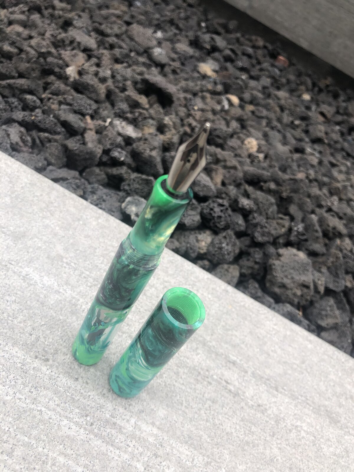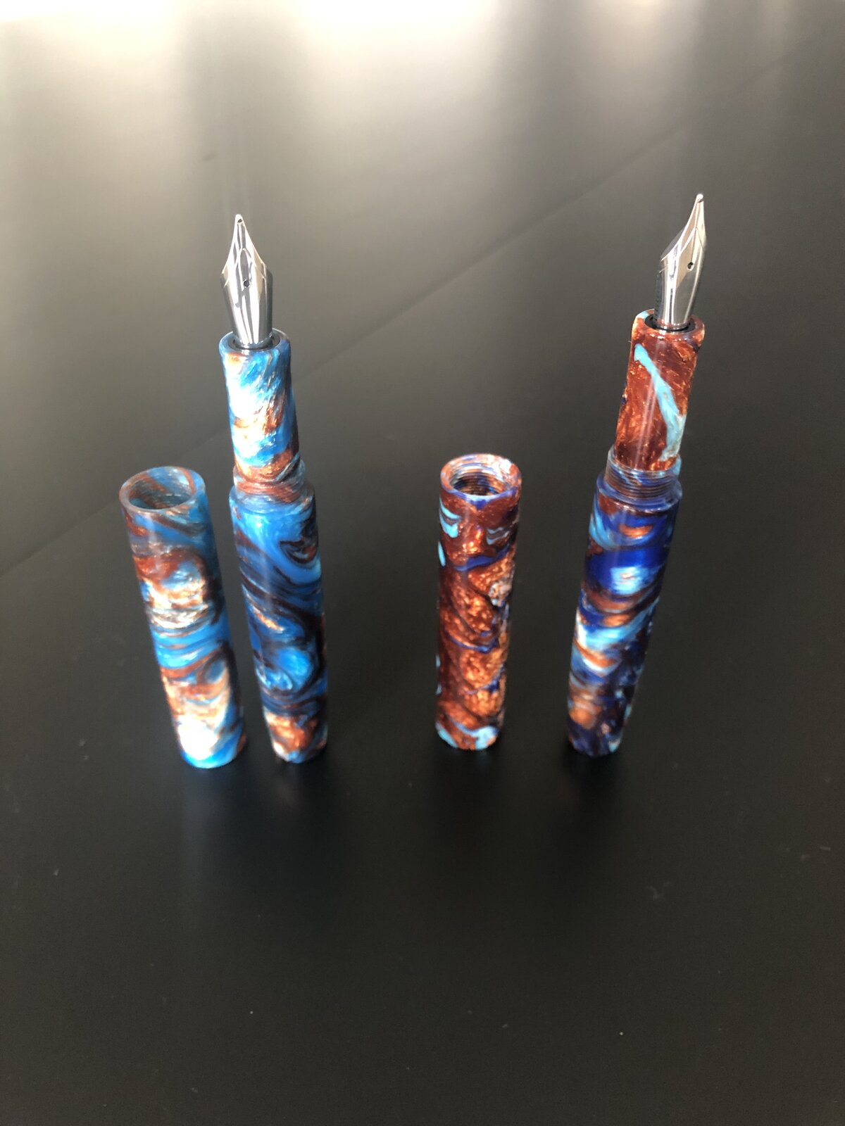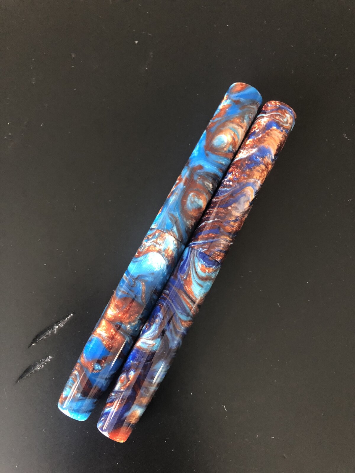 Made from Alumilite. Green were Midwesthybrids blanks, the blue was in house poured.