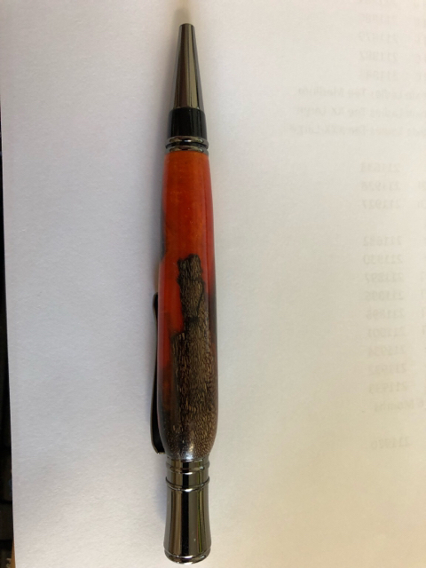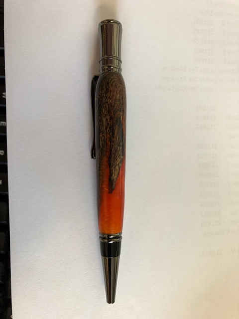 The wood came from a sawmill in Cocoa, Fl. The pen matches up nicely with a bar top that was made from wood from the same sawmill.