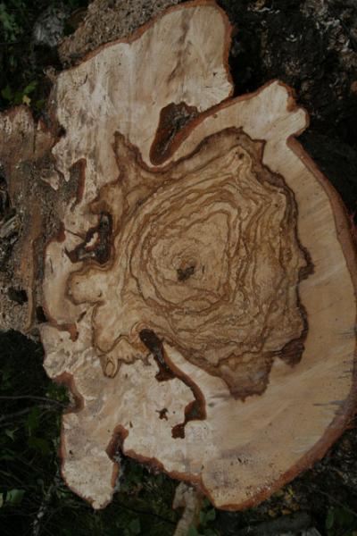 I cut 2 slabs like this one and a bunch of smaller ones today, finished up the fire wood from the tree as well. Anyway a side and front view of one of the slabs.