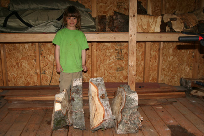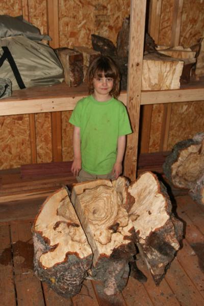 This is my 4 year old son Gunther, he is 4'3" tall. In this pic he is standing with the first 4 sections of the bigger burl. There is still about 4 feet of burl on the ground and I have not reached it's widest point. These sections are much wider than tall and the last one would easily make a nice coffee table.