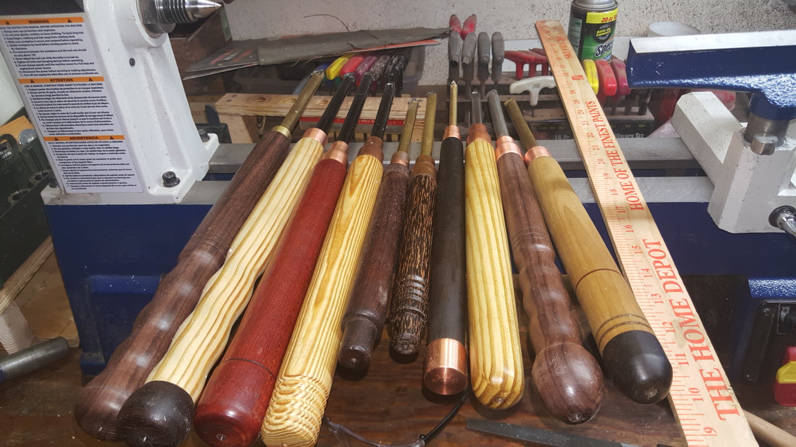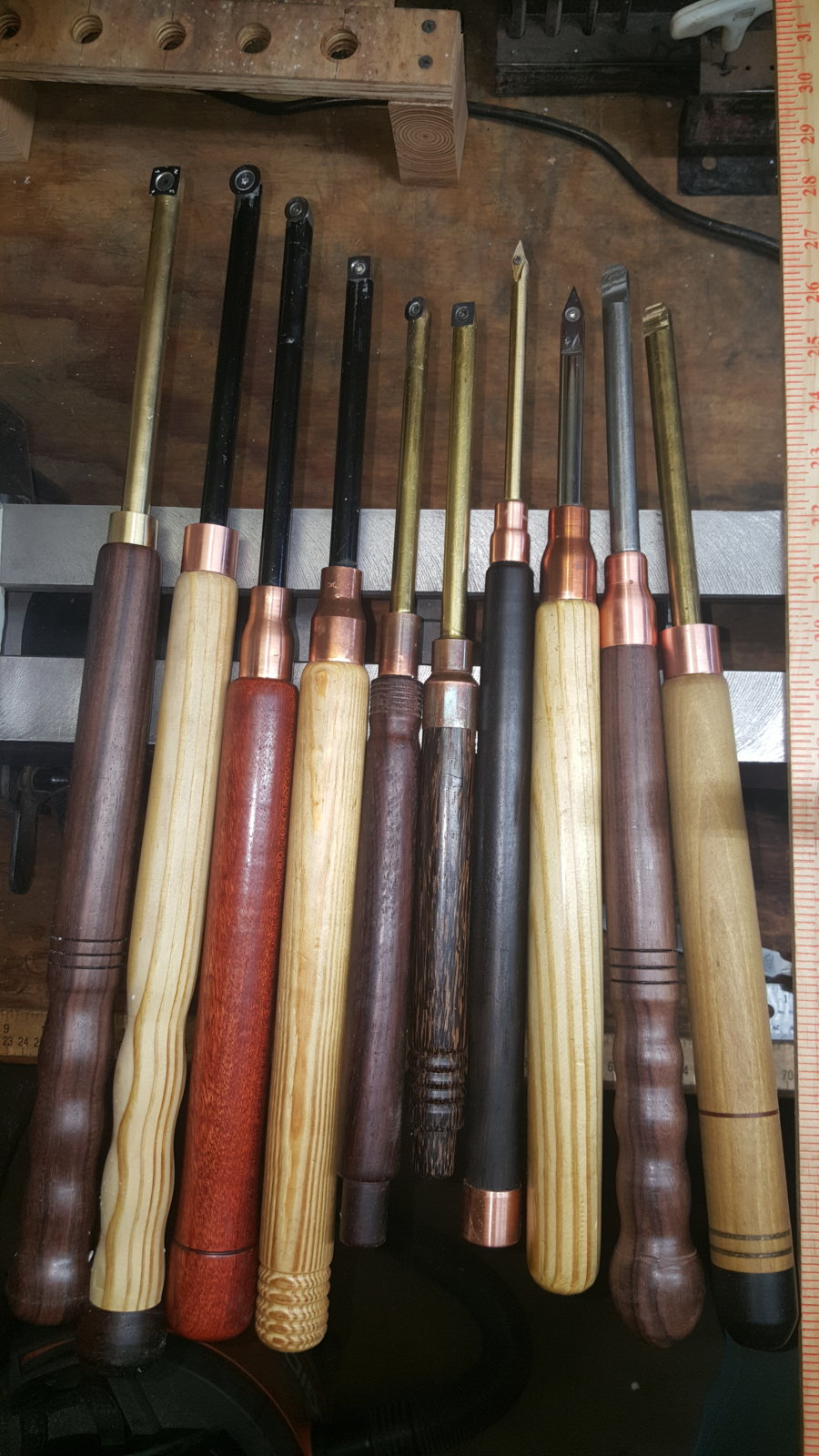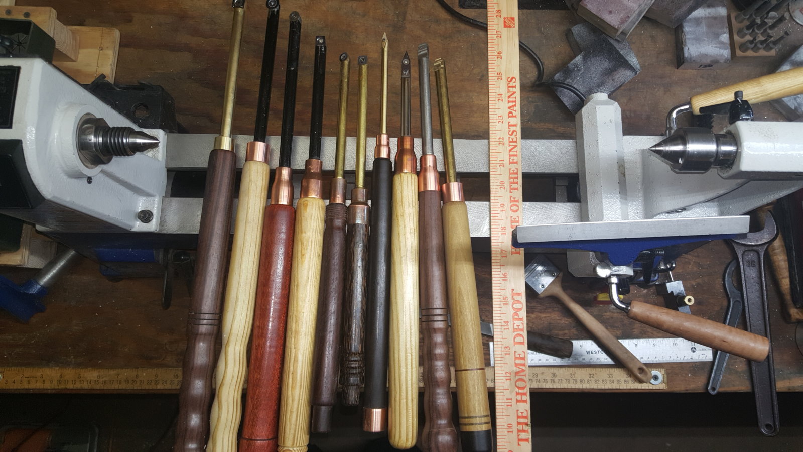 * I have both carbide and HSS turning tools at the lathe at the same time, and do not hesitate to switch between them. Adjust the tool rest accordingly.