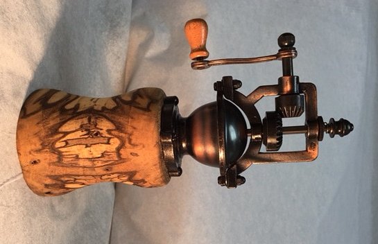 I posted the other day a tree fort I build my grand kids in Florida with old wood from a torn down saw mill. The wood was rough cut 2" x 6" and using some of the spalted scrap I made a few pepper mills. I smoothed one side and glued together to obtain a 4" thick piece of wood. You get some wonderful designs from the spalted pieces.
