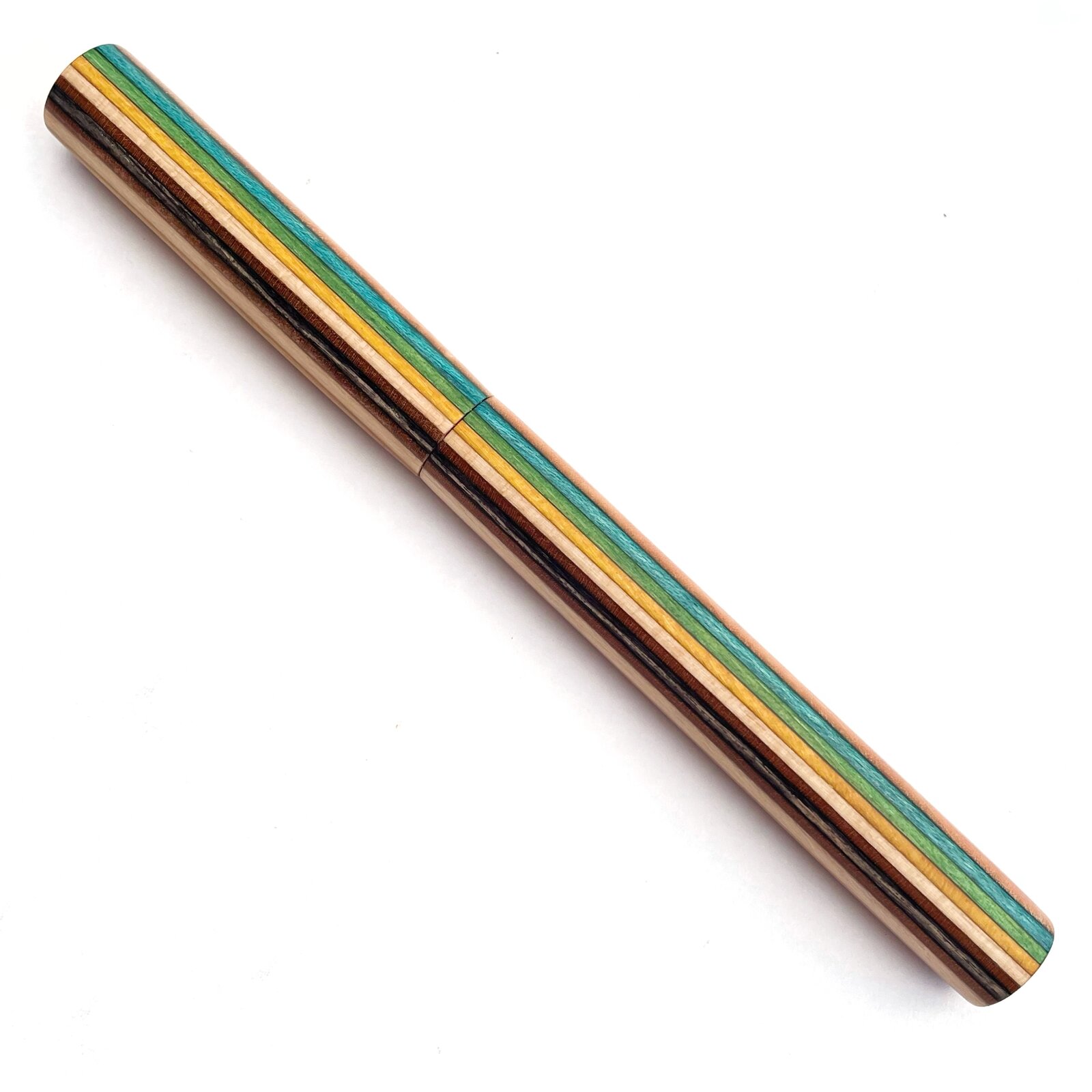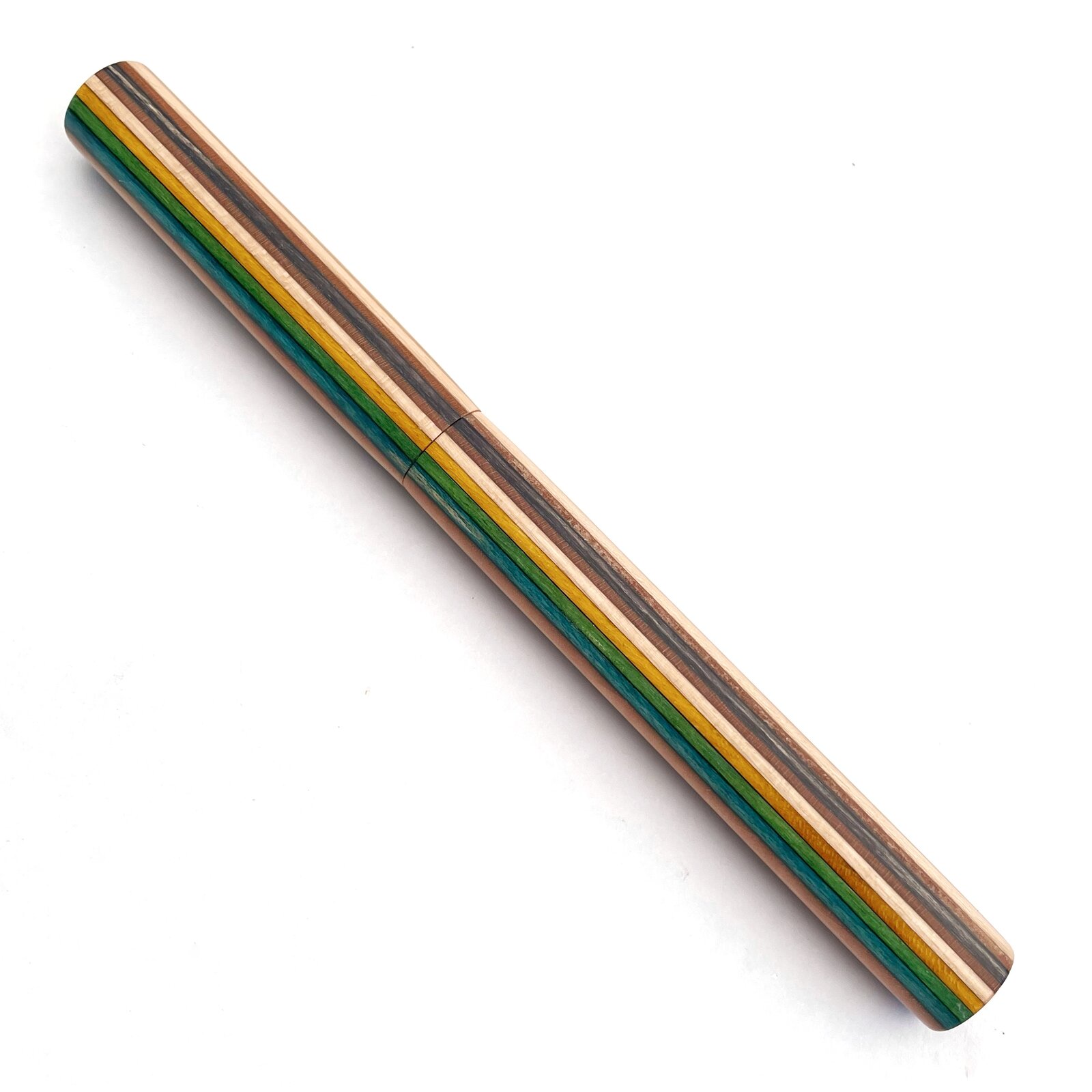 These recycled skateboard blanks are starting to turn into a bit of an addiction for me. They're fun to turn and the color in them really tells their story. I experimented with a BLO finish on this one so it didn't POP quite as much as my last one but it feels great in the hand