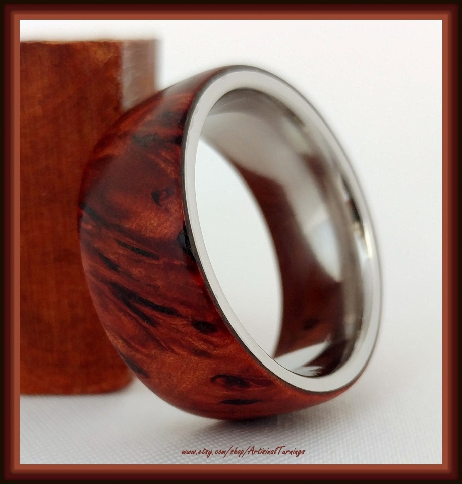 I'm not sure what species of wood this burl came from, but it made a pretty ring!