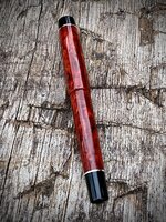 I have had this red Mazzucchelli cellulose acetate in my "Special Blanks" drawer for a while and kept picking it up and then putting it down as it never really appealed. It appeareds more toward the orange end of the red spectrum. However I decided to make it on the weekend and ended up being really pleasantly surprised by it. The colour of the finished pen is a much deeper red than I had anticipated.