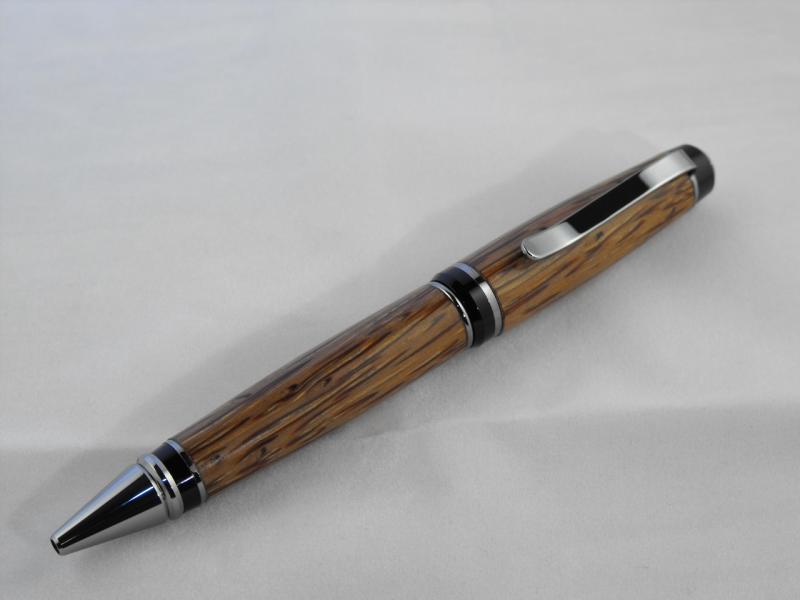 Here is a pen I turned earlier last week. It's a red palm cigar dressed in black TI. Comments and critiques welcome.