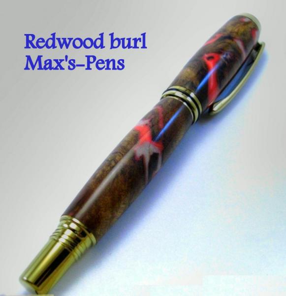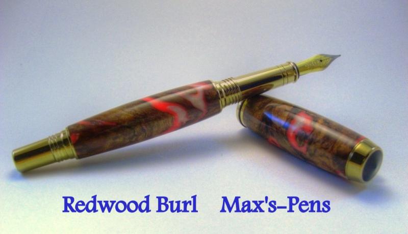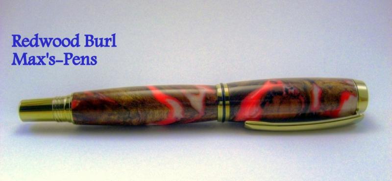 This is some redwood burl that was real punky so I cast it with some red and white PR, it has 8 coats of CA wet sanded to 4K and plastix polished. It's on a Gold ti Jr Gent from CSUSA.