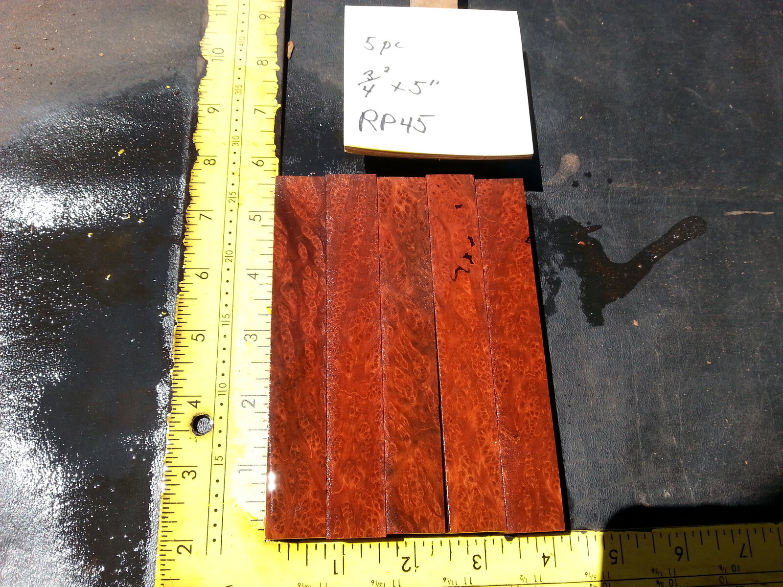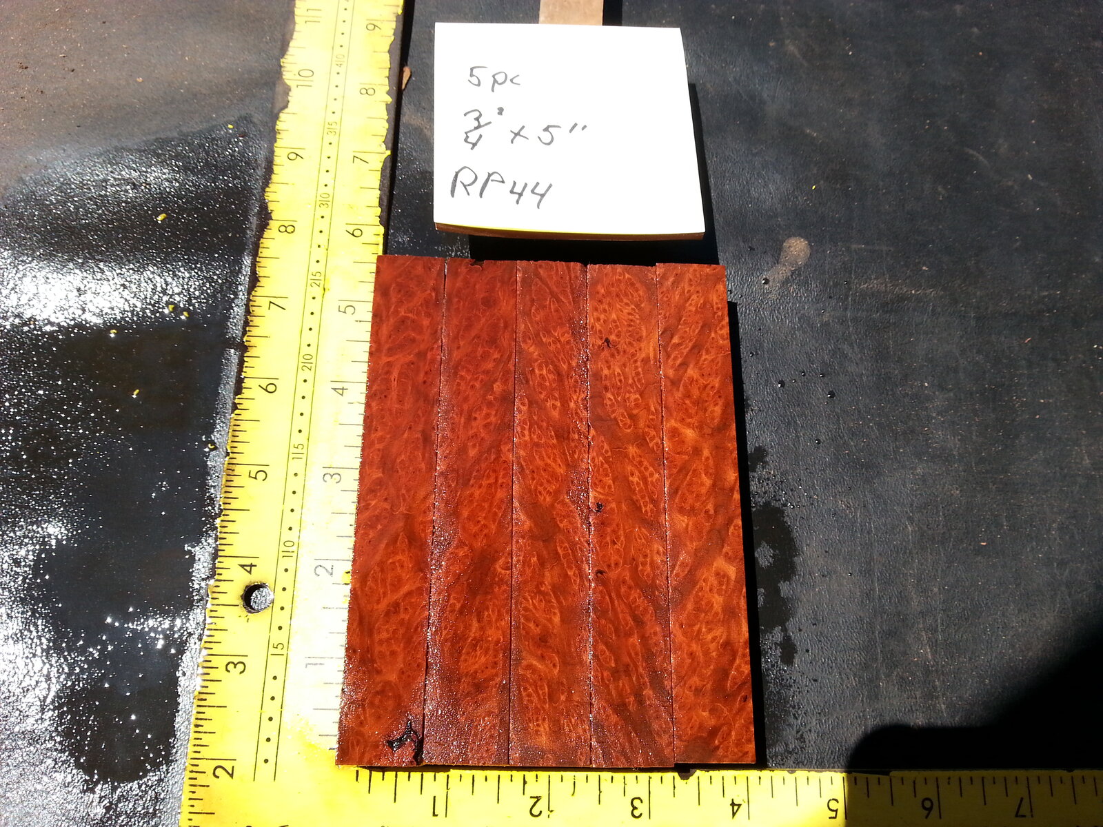 RP44, $25.00 + $5.00 to ship = $30.00 total. Old growth redwood lace burl pen blanks. Five pieces, measurements in the pics. Misted pics show two sides. Nice ones guys. : ) These pen blanks came from Humboldt County, California near Falk, a historic little logging town and lumber mill created in the early days of redwood logging. Google "Falk, historic logging town" and see some history of the area from which these pieces came.